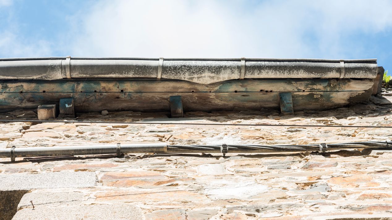 Détail d'une corniche avec remploi d'un espar de bateauImmatriculation
