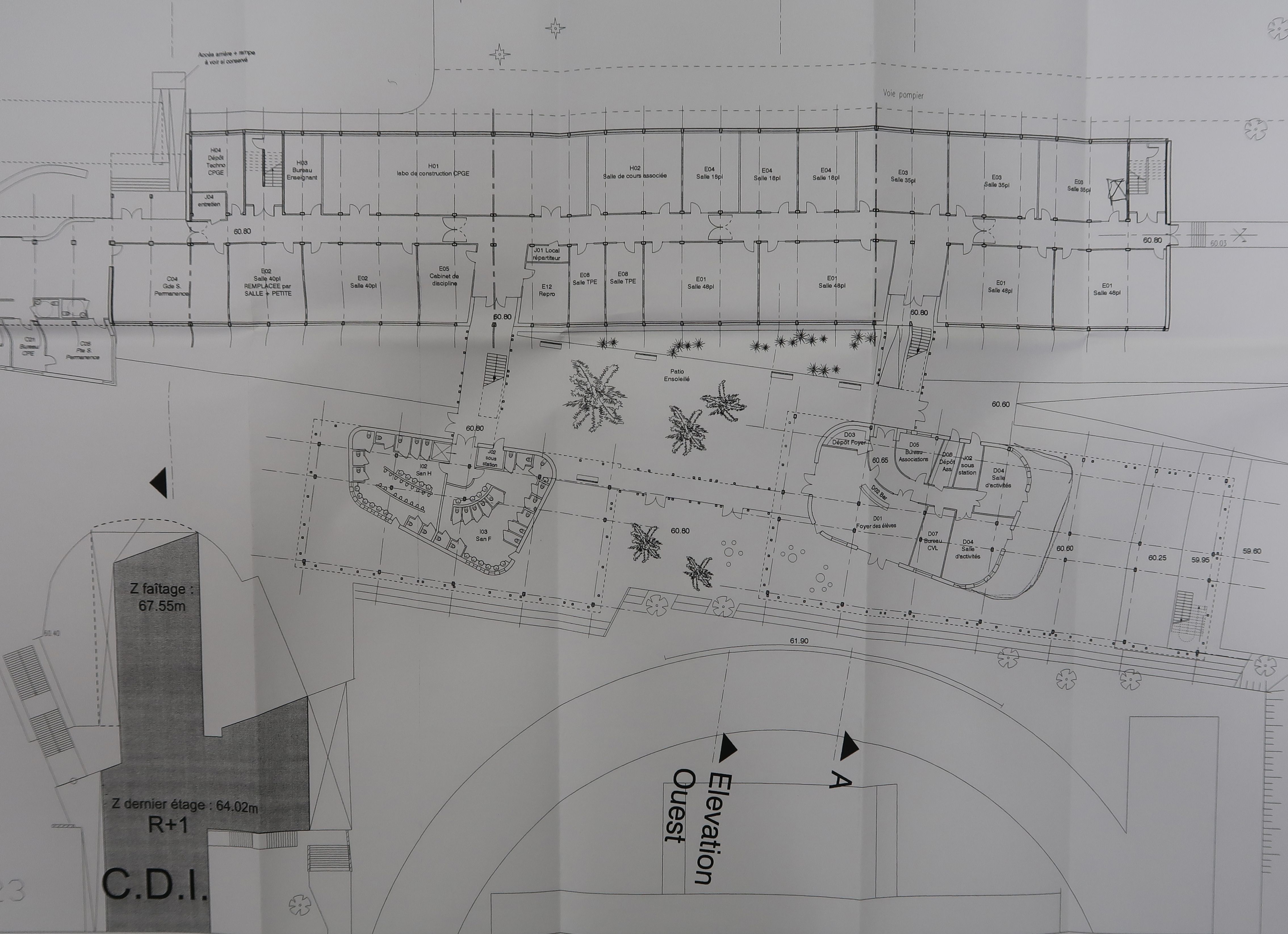 Restructuration et extension de l'externat : plan du rez-de-chaussée. Thierry Soquet (Architecture plurielle), architecte, plan du 3/10/2008.Immatriculation