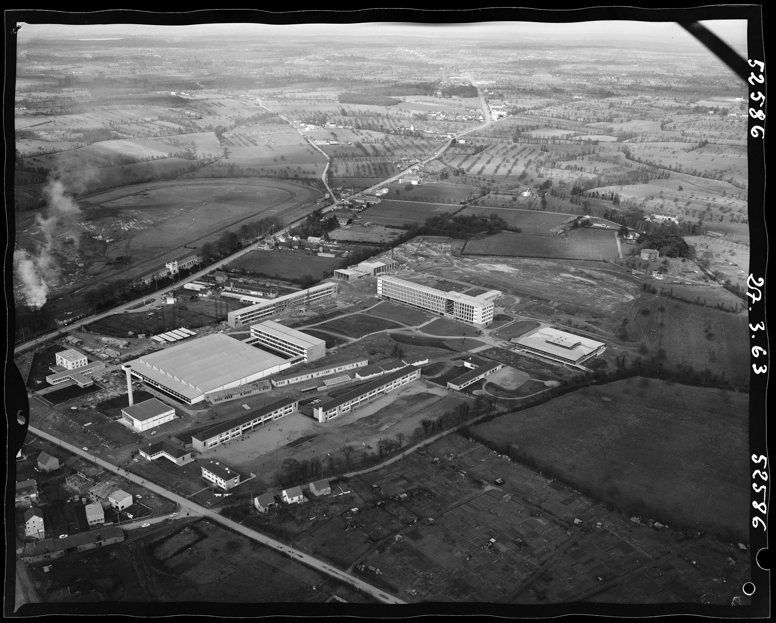 Musée de Bretagne (Rennes) : 971.0037.1074 ; 971.0037.2496 ; 971.0037.2586 ; 971.0037.8476. Heurtier : Vues aérienne de l'école nationale d'enseignement technique, 1962-1964.