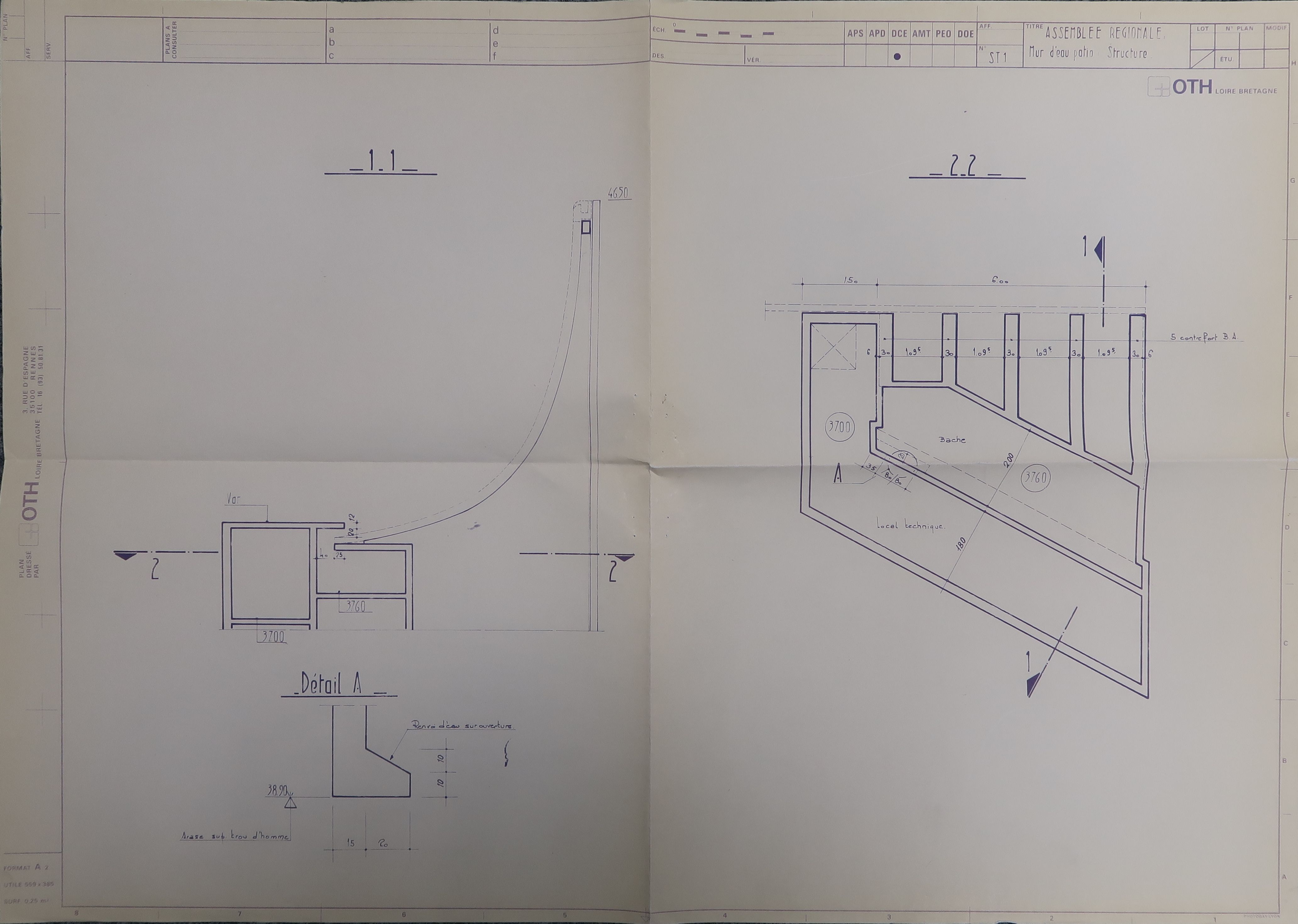 Mur fontaine de Marta Pan : "mur d'eau, structure", OTH Loire Bretagne.Immatriculation
