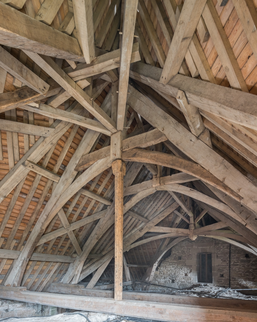 Vue de la charpente de l'abside et de la ferme orientale du choeur.Immatriculation