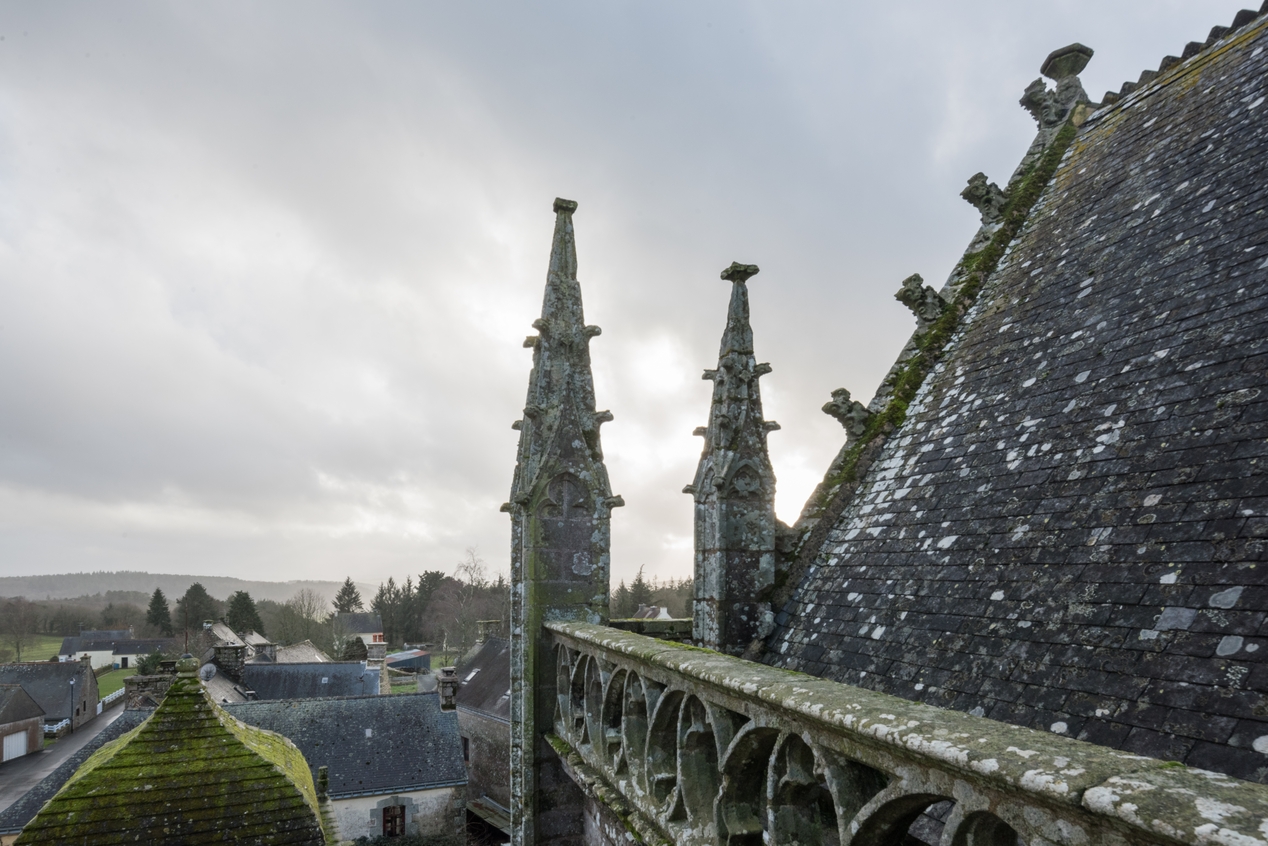 Vue du versant est de la toiture du croisillon sud depuis la coursière du chevet.Immatriculation
