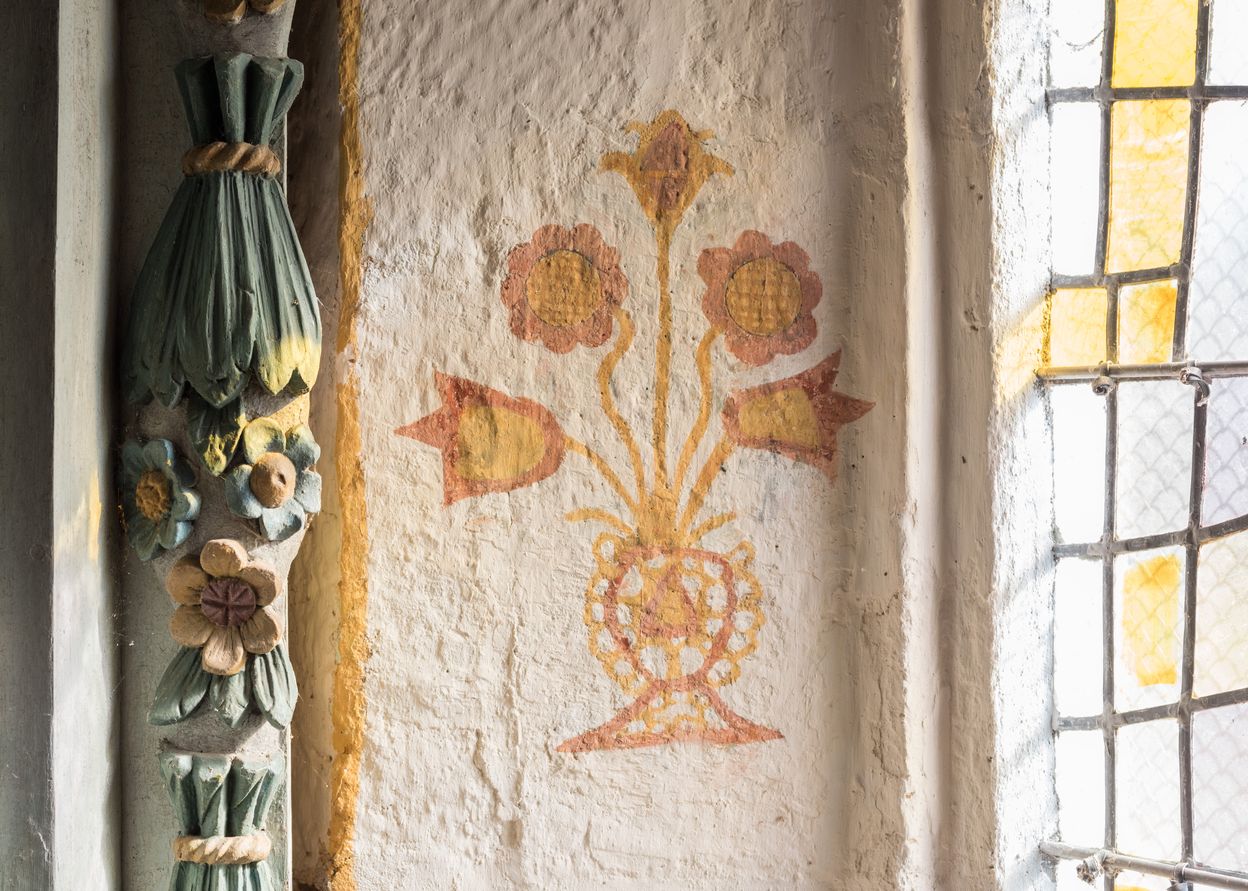 Vue de détail : décor peint dans l'ébrasement de la baie sud du choeurImmatriculation