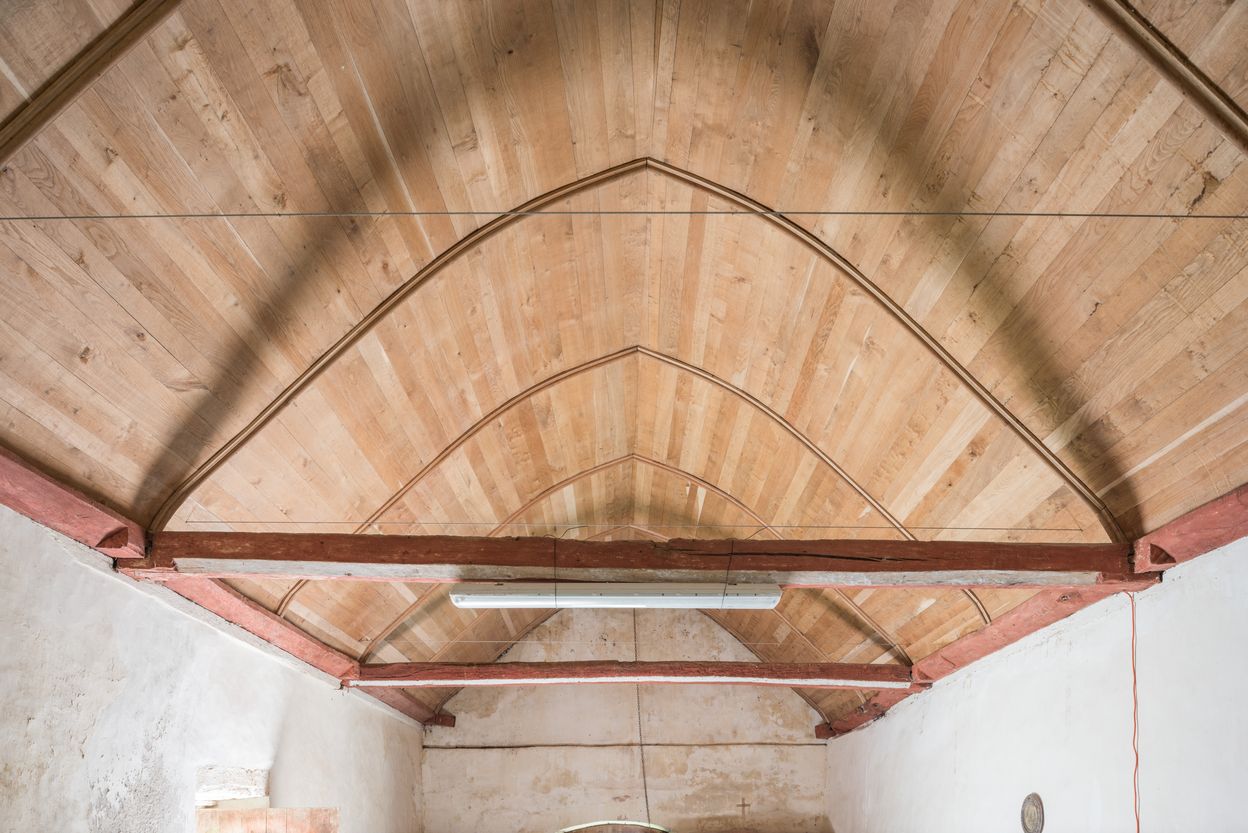 Vue du plafond lambrissée de la nefImmatriculation