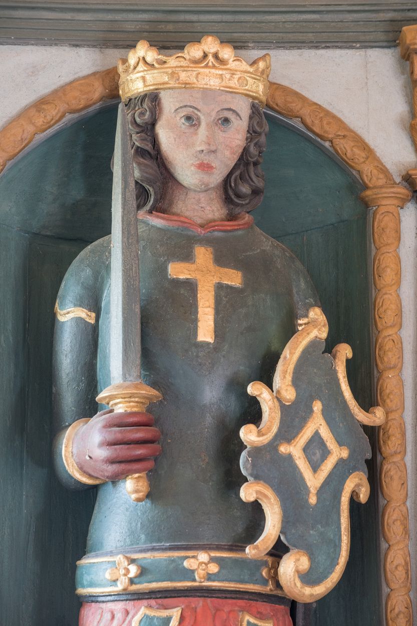 Vue de détail : partie supérieure de la statue de saint SalomonImmatriculation