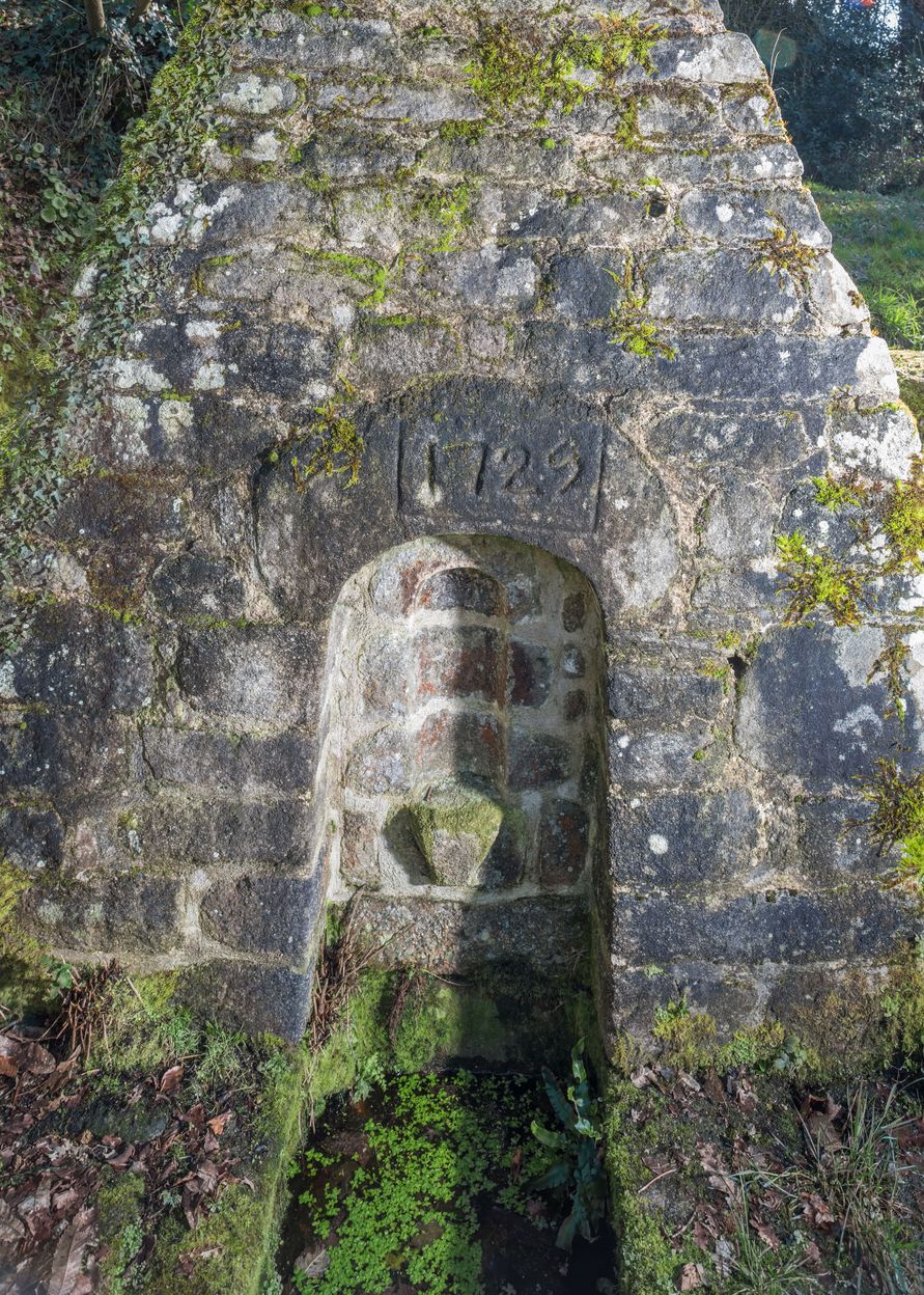 Vue de détail : date portée au-dessus de la niche de la fontaineImmatriculation