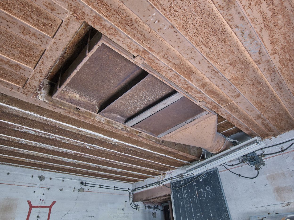 Vue de la ventilation (aspiration) de l'air vicié de la chambre de tir pour un canon de 7,5 cm.Immatriculation