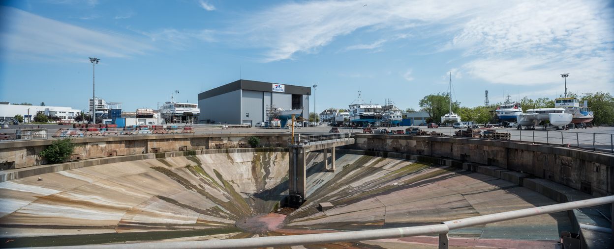 Slipway et cales de construction et de réparation navale, actuellement bassin de décantation, aire de réparation navale (Lorient),