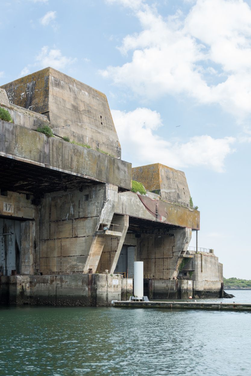 Vue du front avant orienté vers le sud-ouest : entrées des alvéoles. Le bunker "KIII" est protégé par des casemates pour canon et mitrailleuse et surmonté d'encuvements pour canon antiaérienImmatriculation