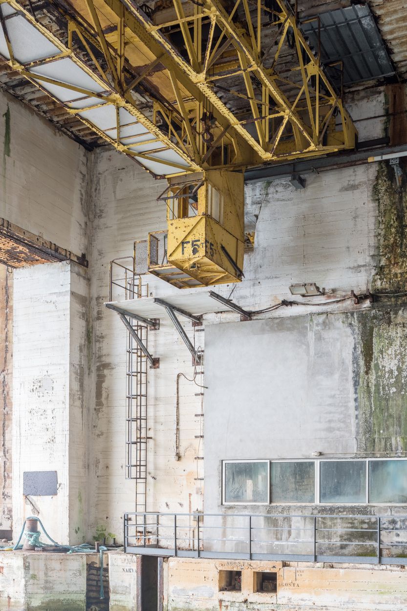 Vue de l'alvéole G (n° 13 et 14) : pont roulant d'une capacité de 5 tonnesImmatriculation