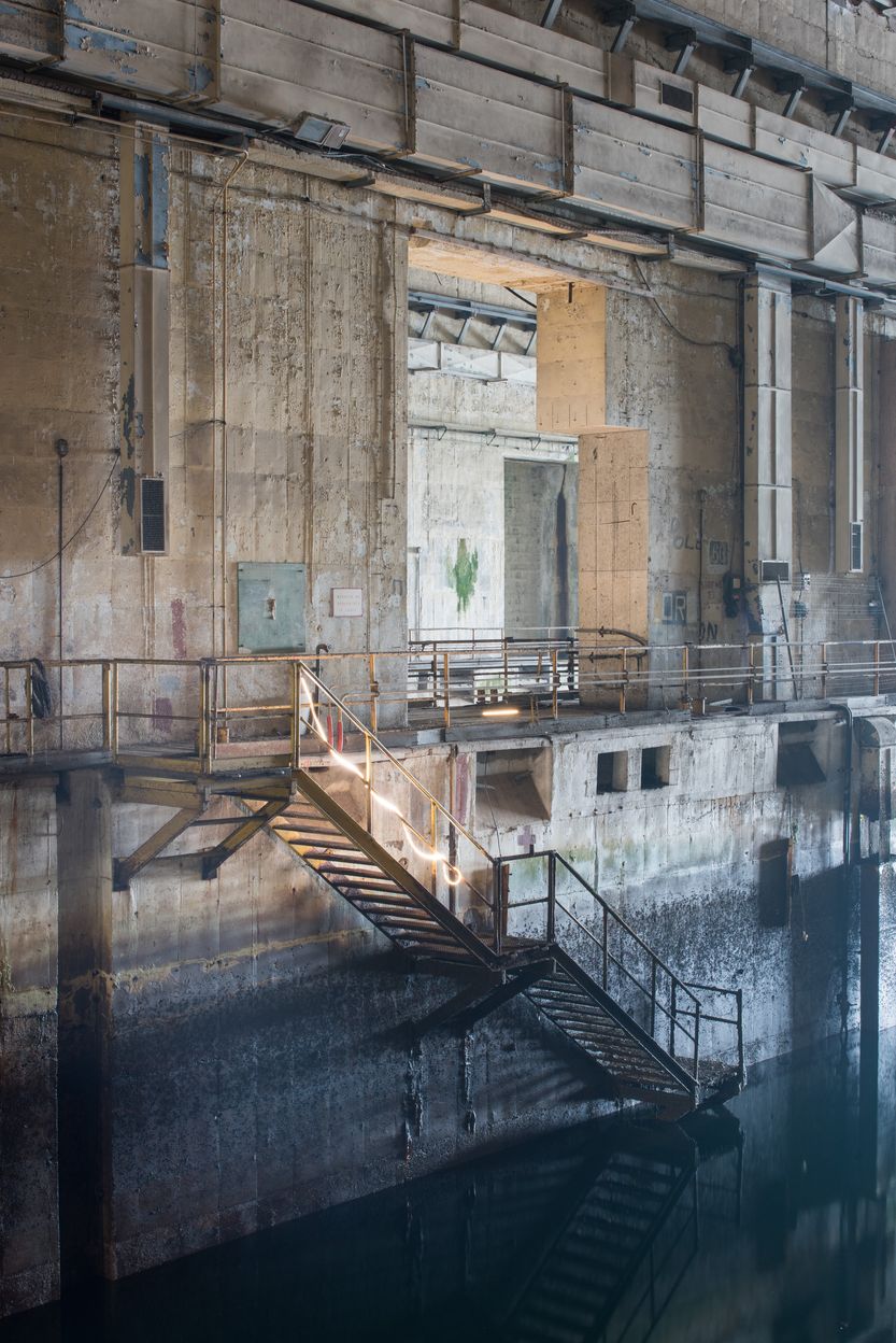 Vue de l'alvéole A (n° 24) : escaliers plongeant dans l'eauImmatriculation