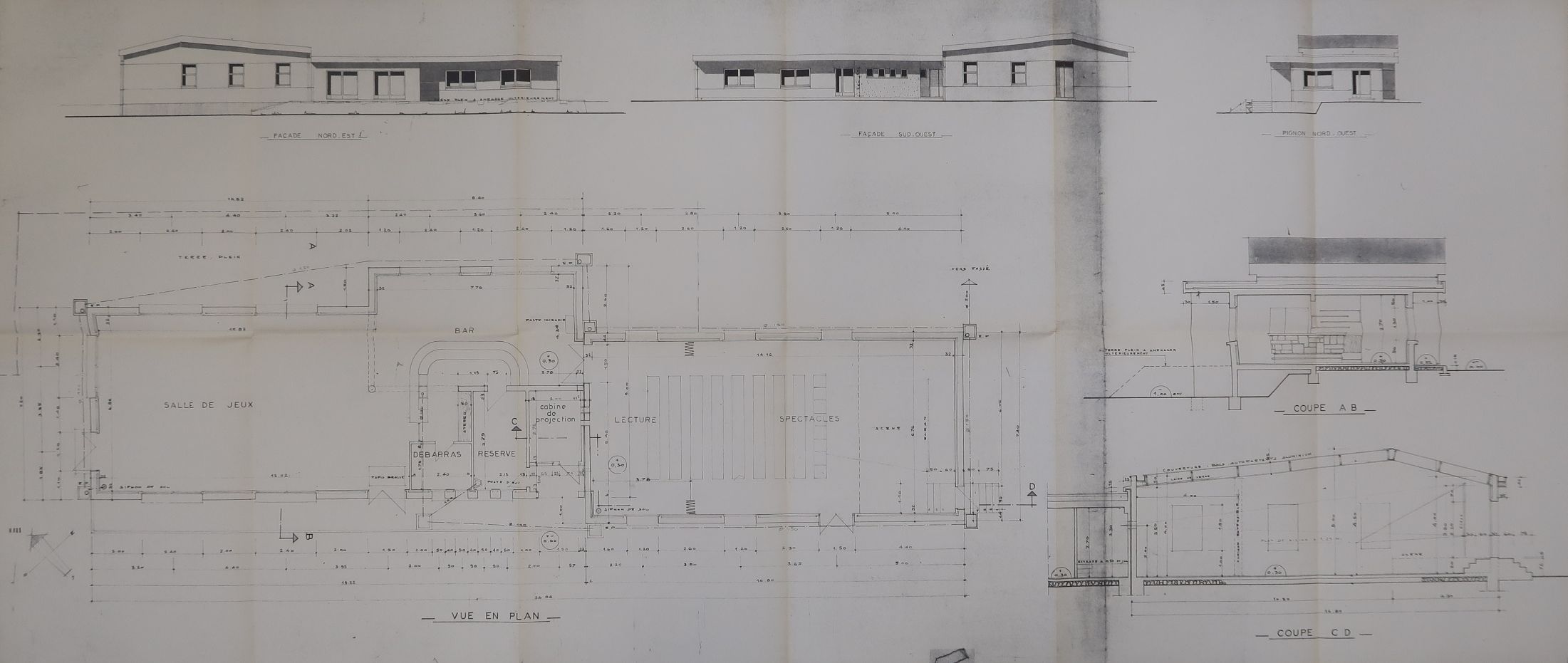 "Etel, 56, Ecole d'apprentissage maritime. Construction d'un foyer". Plan sans nom ni date, vers 1969-1972.Immatriculation