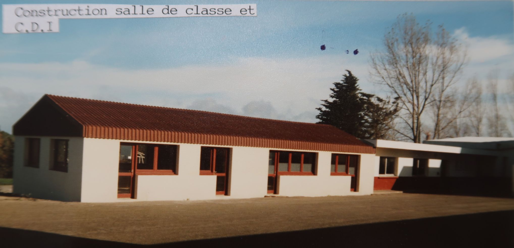 "Construction salle de classe et CDI". Le nouveau bâtiment, est construit en 1987, selon les plans des architectes Michel Ysvelain et Claude Blin.Immatriculation