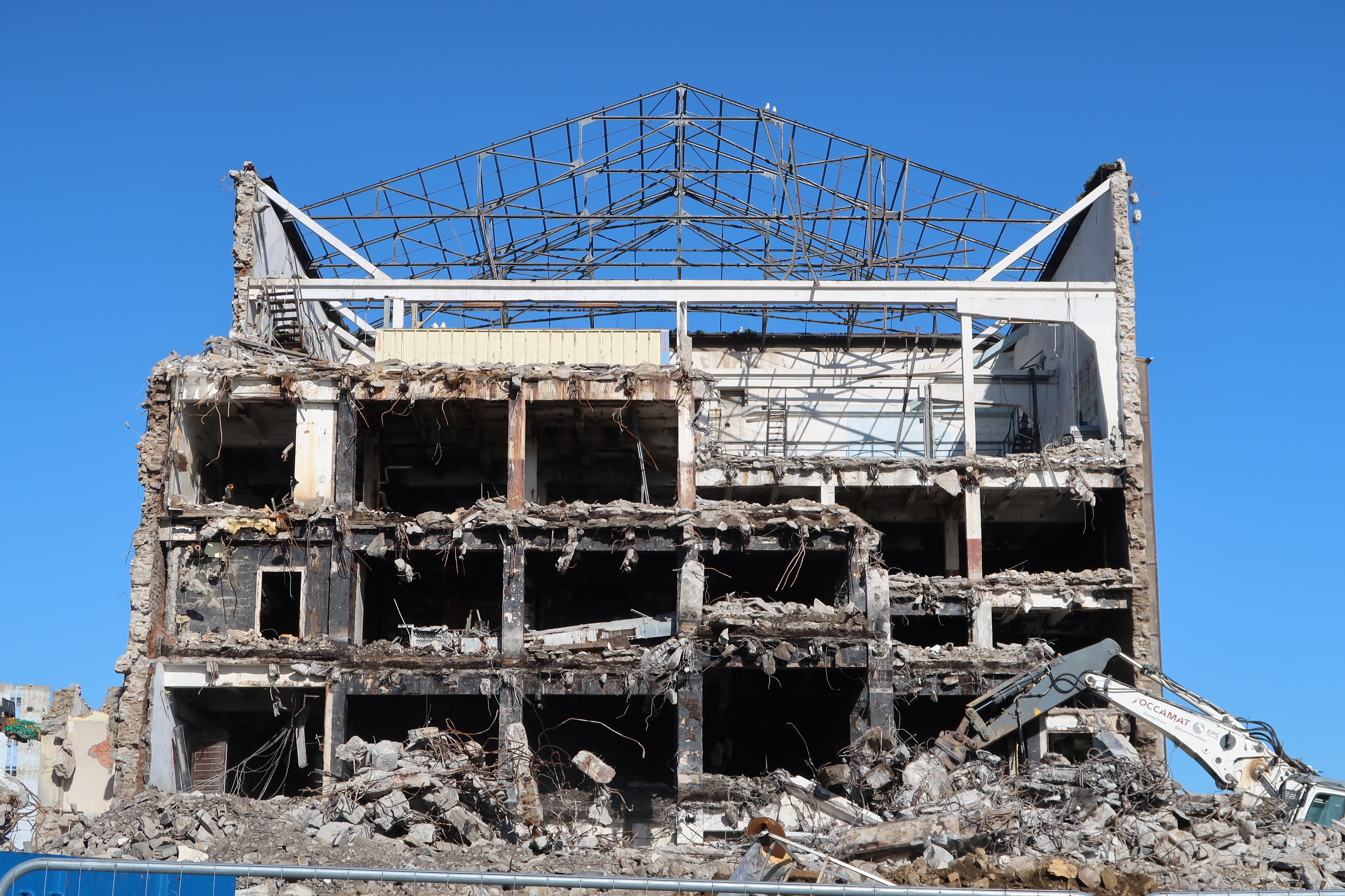 Déconstruction de l'ancien frigorifique, 10 mars 2022 : côté ouest, infrastructure porteuse, charpente métalliqueImmatriculation