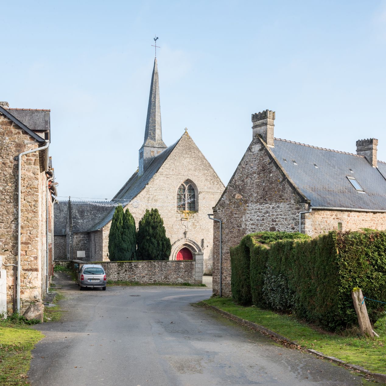 Façade occidentale de l'église paroissiale depuis la rue de la Roche BlancheImmatriculation