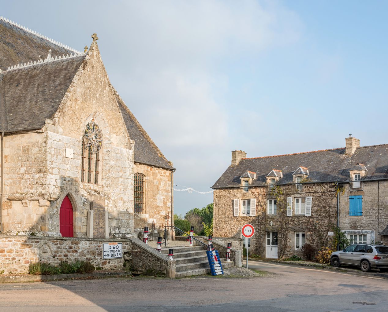 Porche sud de l'église paroissiale et maisons 19e du bourgImmatriculation