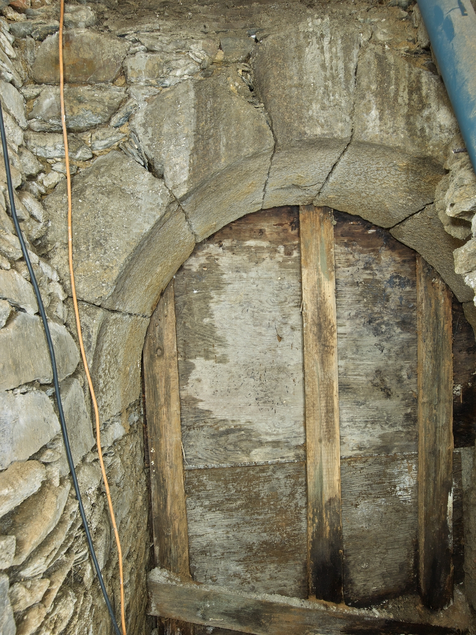 Cave. Porte d'entrée située dans l'angle sud-ouest de la cave, permettant, à l'origine, un accès direct depuis la place du Martray.Immatriculation