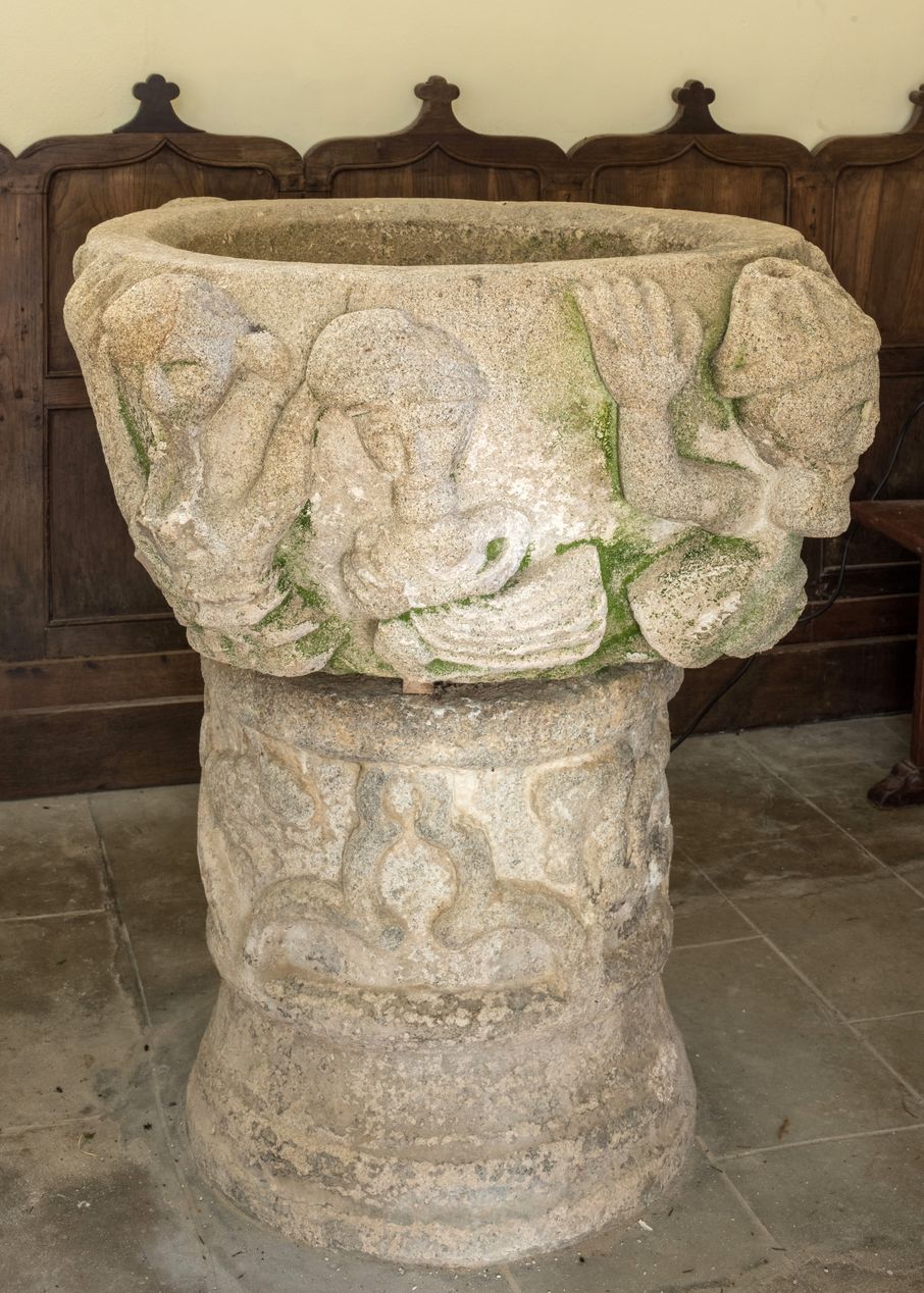 Fonts baptismaux, détail des ornements sculptés de la cuveImmatriculation