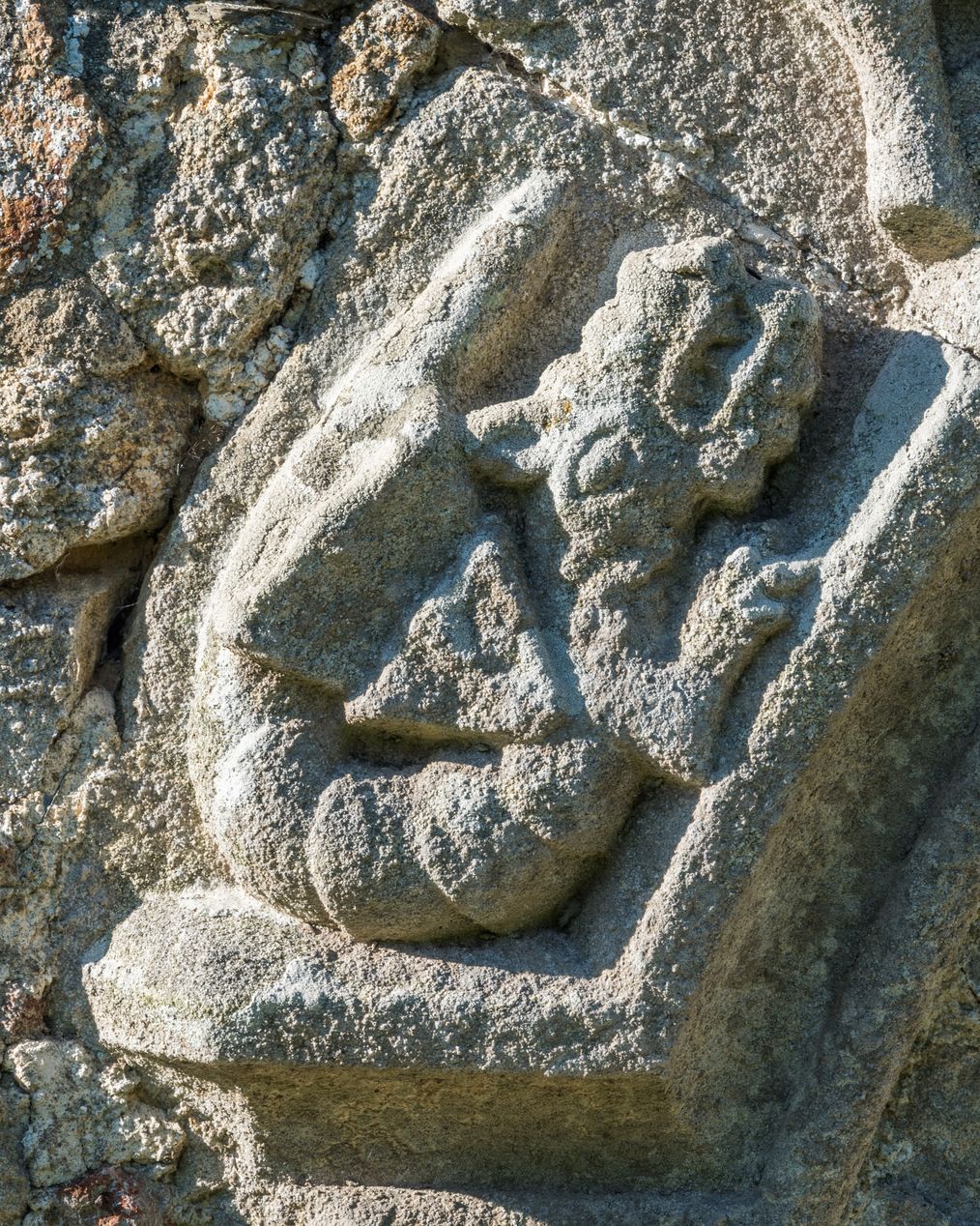 Vue de détail: figure de saurien ou dragon sculptée dans l'accolade de la porte sudImmatriculation