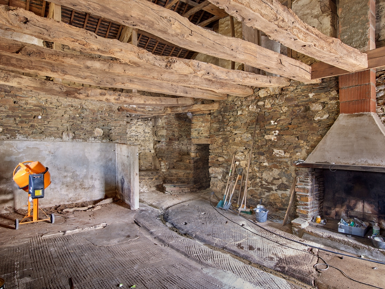 Partie ouest de la maison. Vue intérieure avec escalier en vis dans l'angle nord-est, dans ce qui était autrefois l'appentis nordImmatriculation