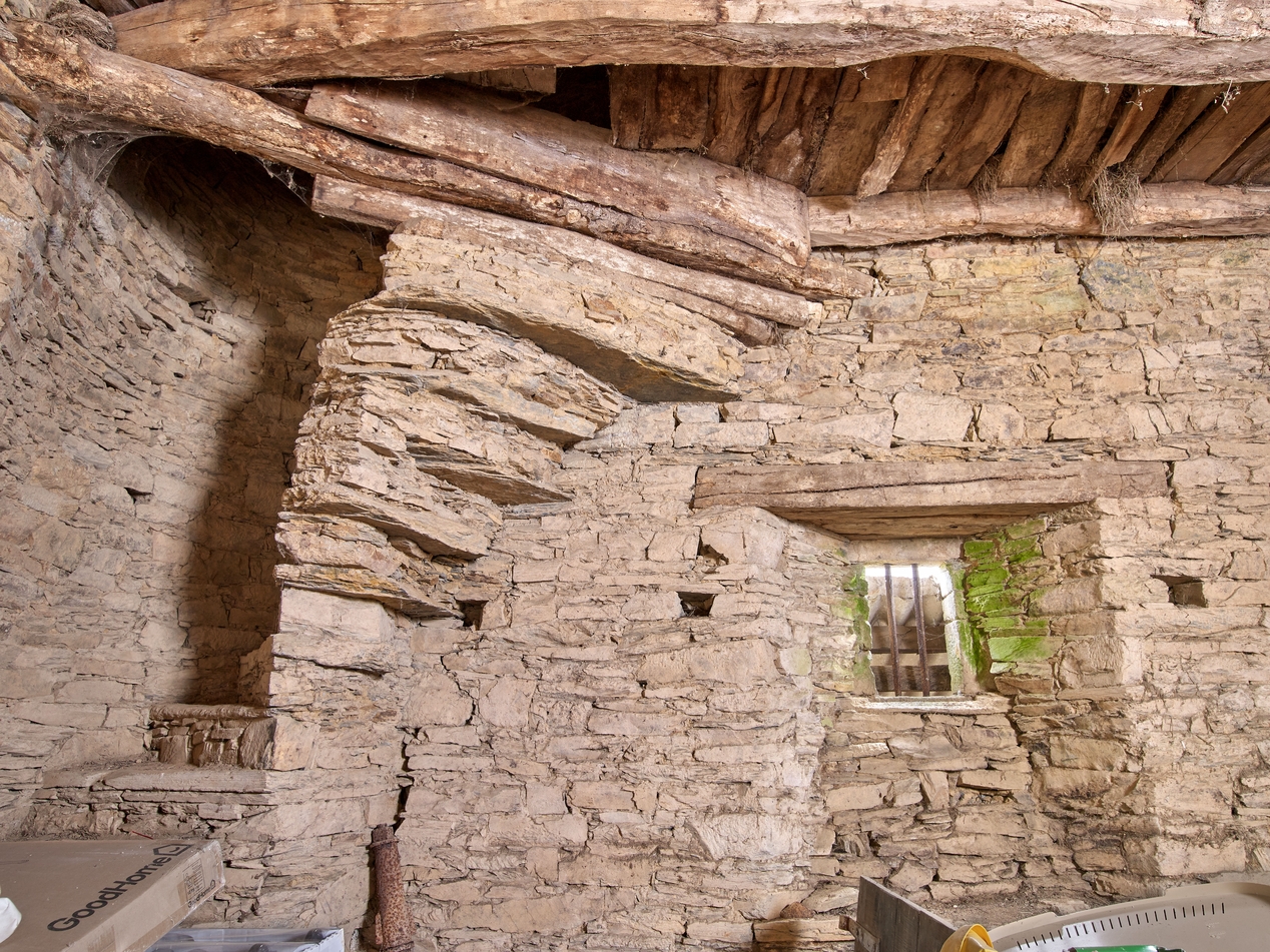 Cour arrière, côté ouest. Pilerie. Détail de l'escalier en vis desservant le grenierImmatriculation