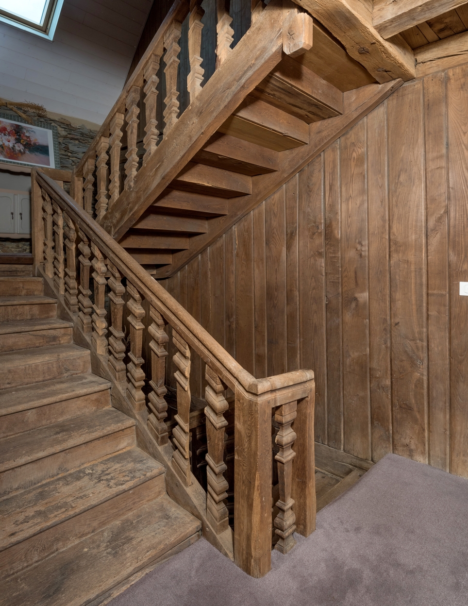 Au bourg, rue Maison des Toiles. Maison de marchand de toile, début du 18e siècle. Escalier à retours en boisImmatriculation