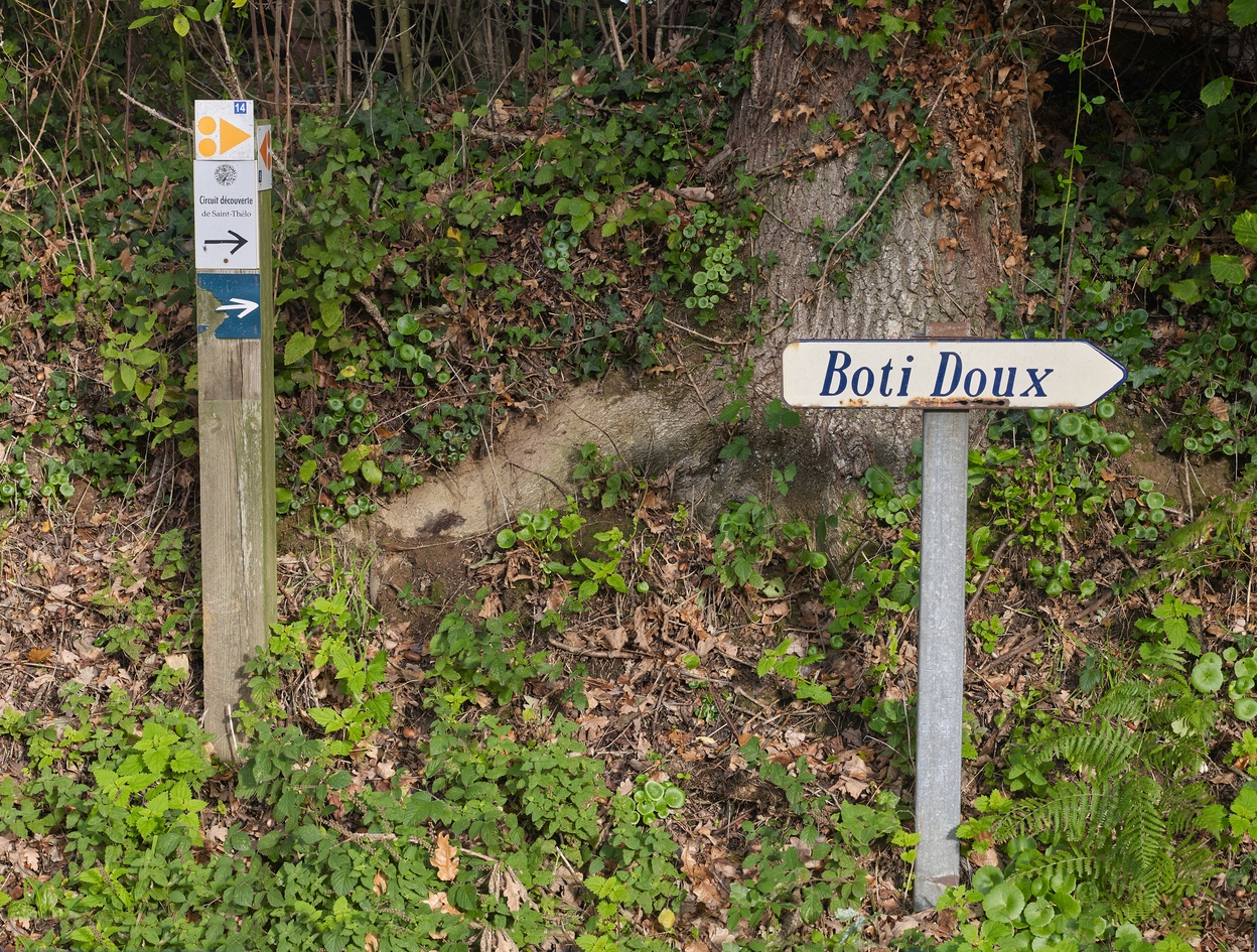 Panneau du lieu-dit "Boti Doux"Immatriculation