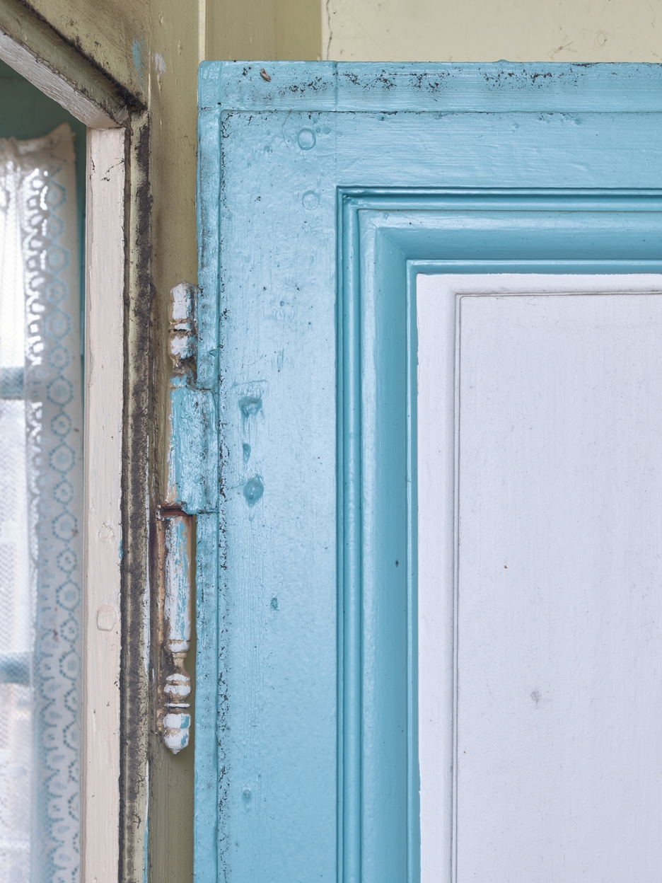 Logis principal. Palier du premier étage. Porte d'une chambre. Détail d'un gondImmatriculation