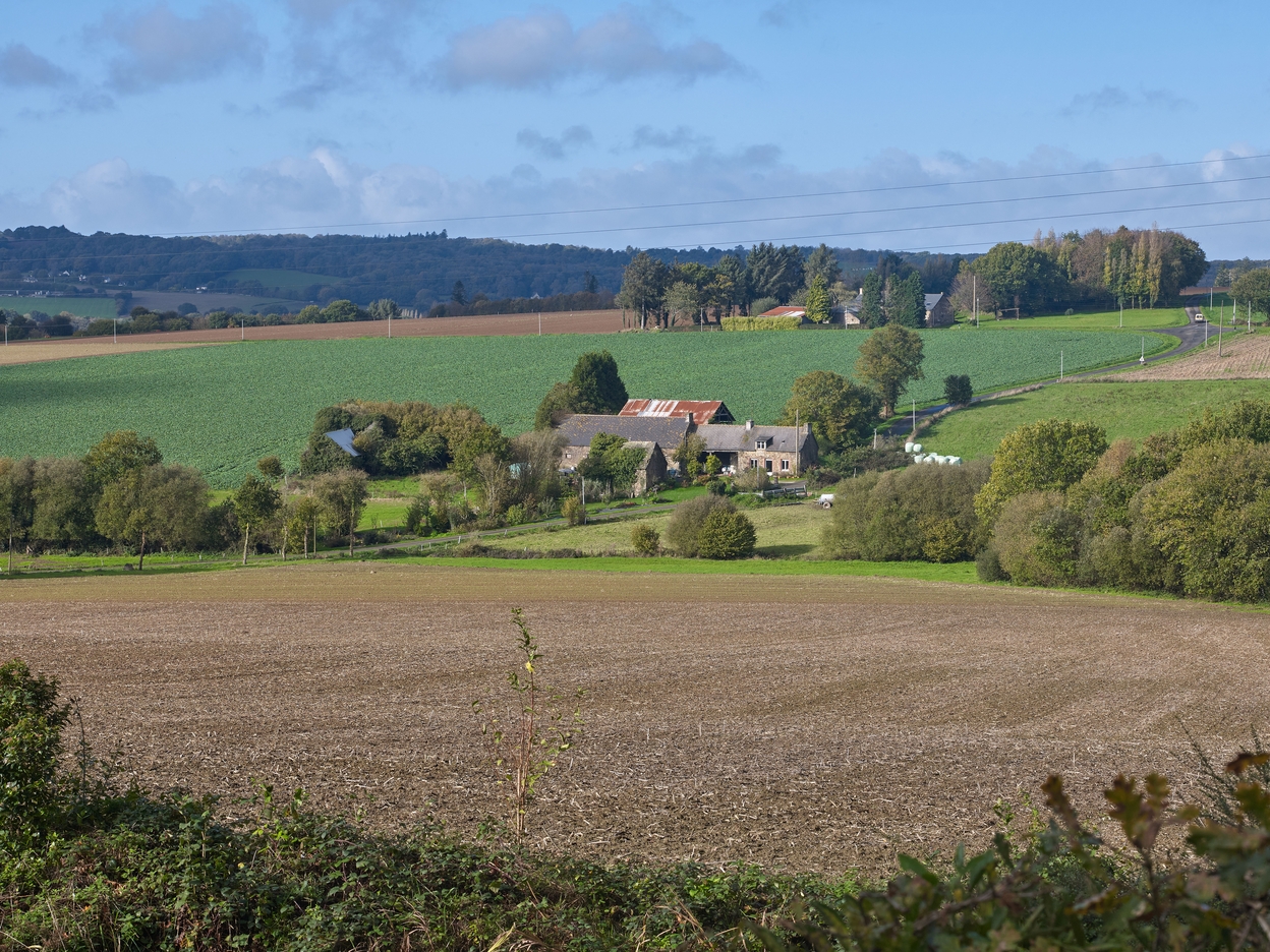Un paysage vallonné : vue sur l'écart du Guémhaut depuis CoëtqueffImmatriculation