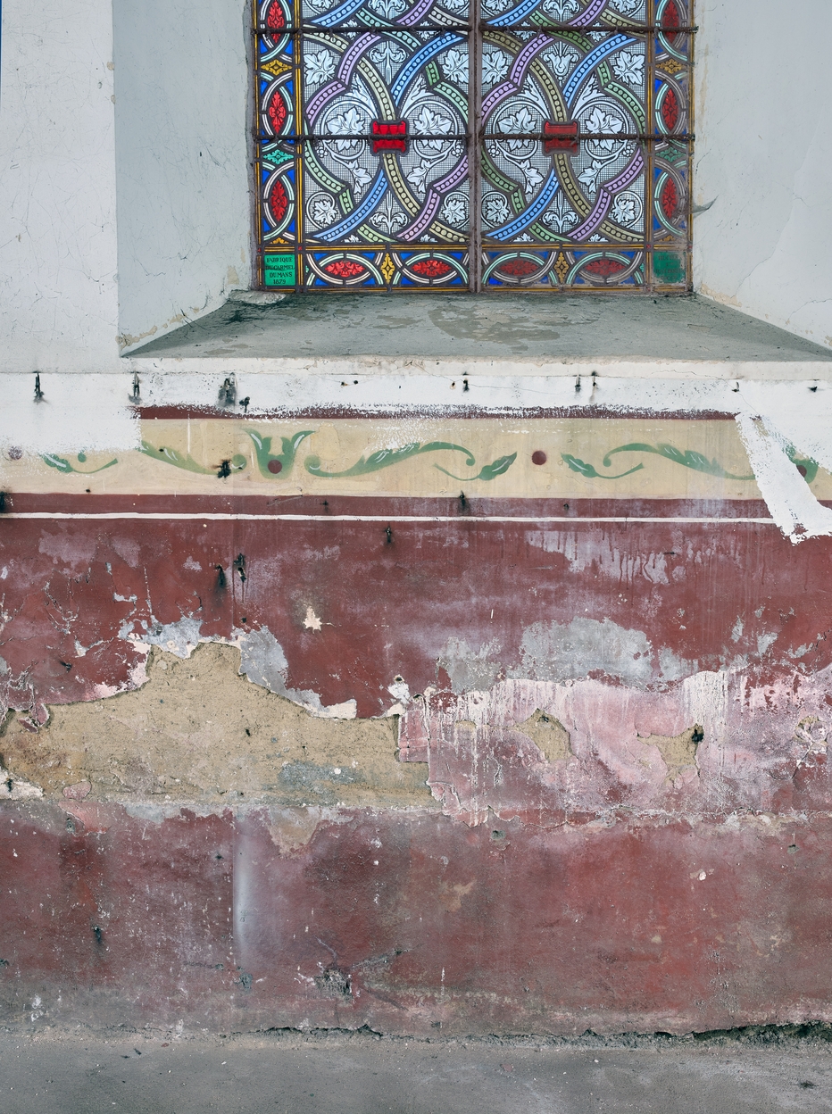 Décor peint au pochoir sur le bas côté de l'égliseImmatriculation