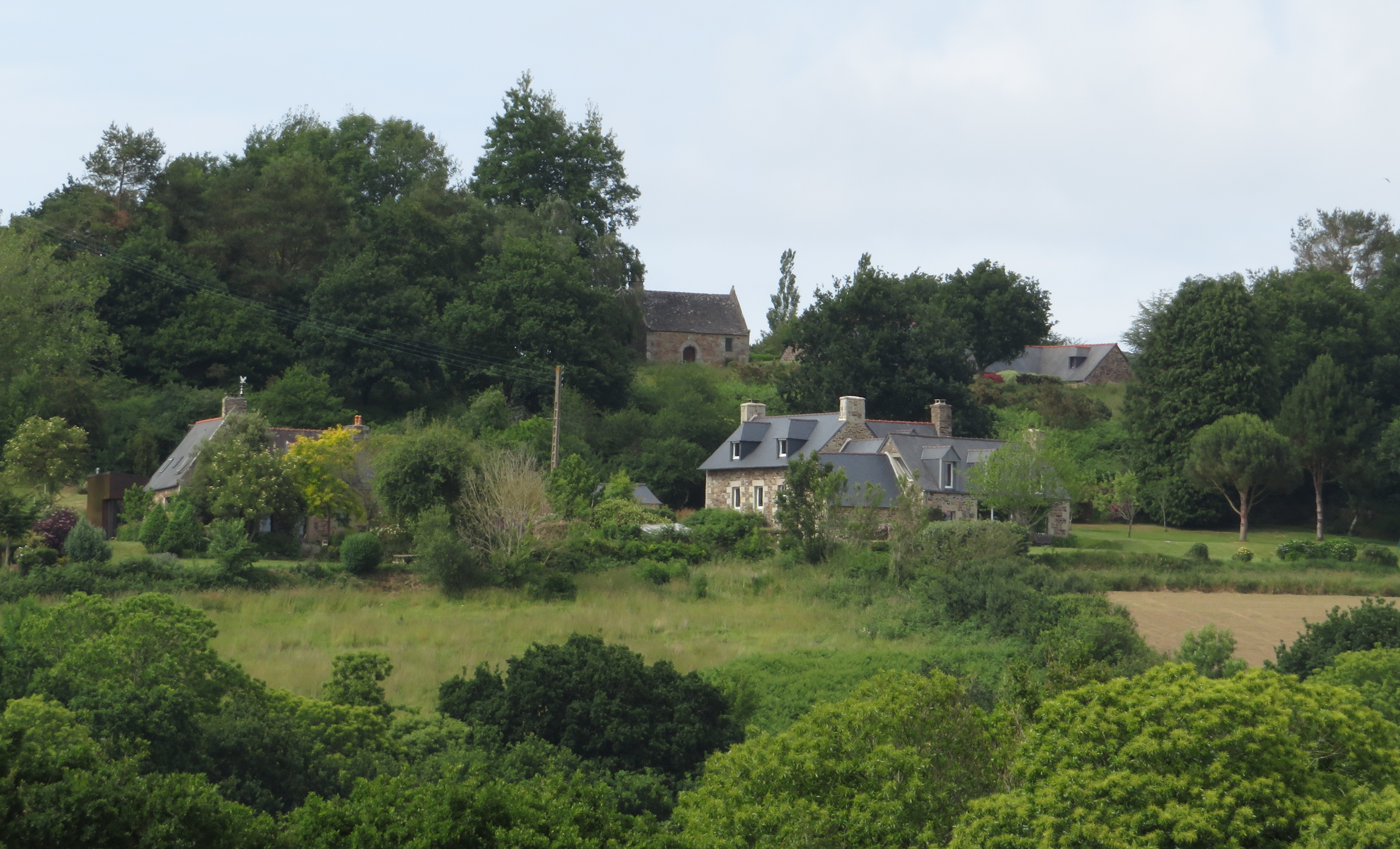 Chapelle Saint-Nicodème, Lannion : vue générale de la chapelle depuis Ker an Marhet (Loguivy-lès-Lannion) de l'autre rive du LéguerImmatriculation