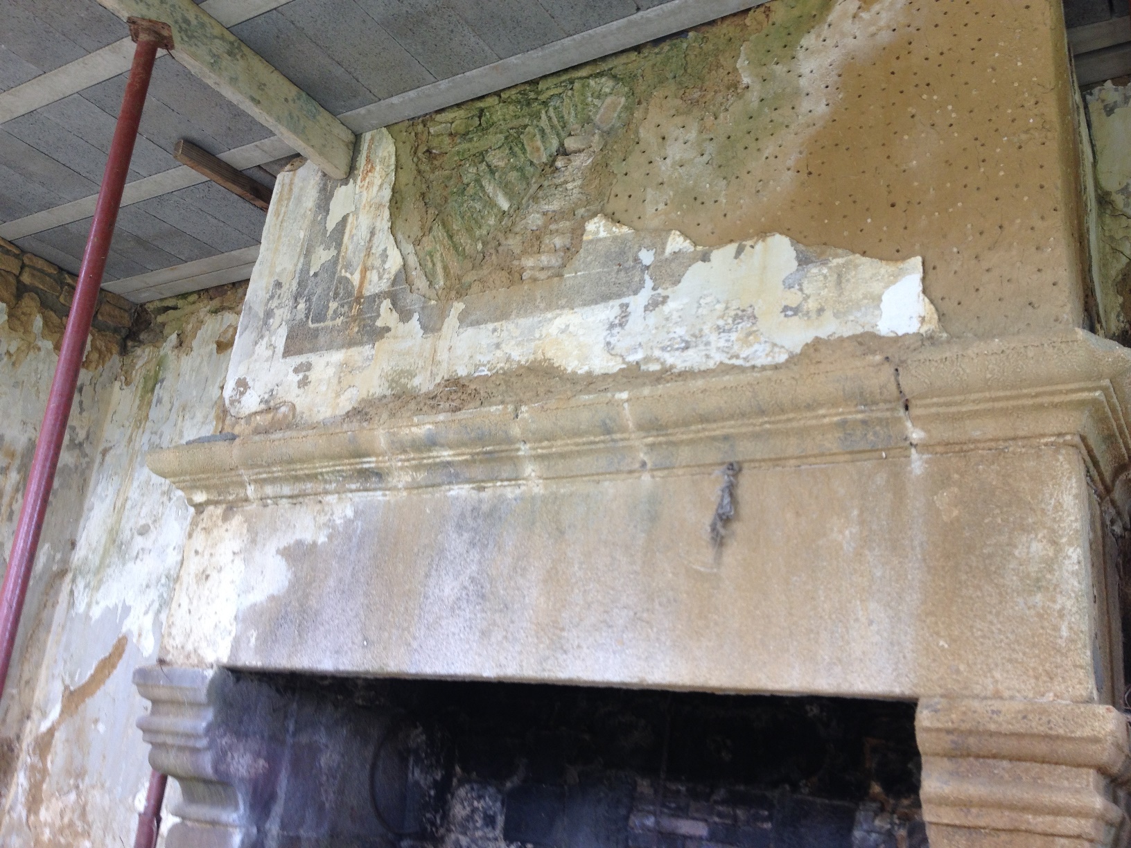 Détail de la cheminée de l'ancien réfectoire, pignon est (en ruine, 2019)Immatriculation