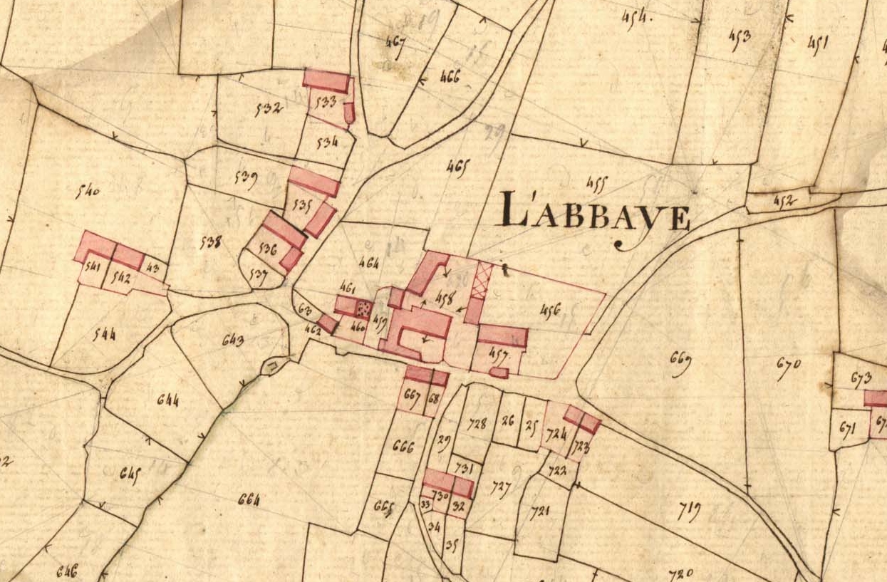 L'Abbaye en 1828. Extrait du cadastre ancien, section A2 (série 3 P 335, Archives départementales des Côtes d'Armor)Immatriculation