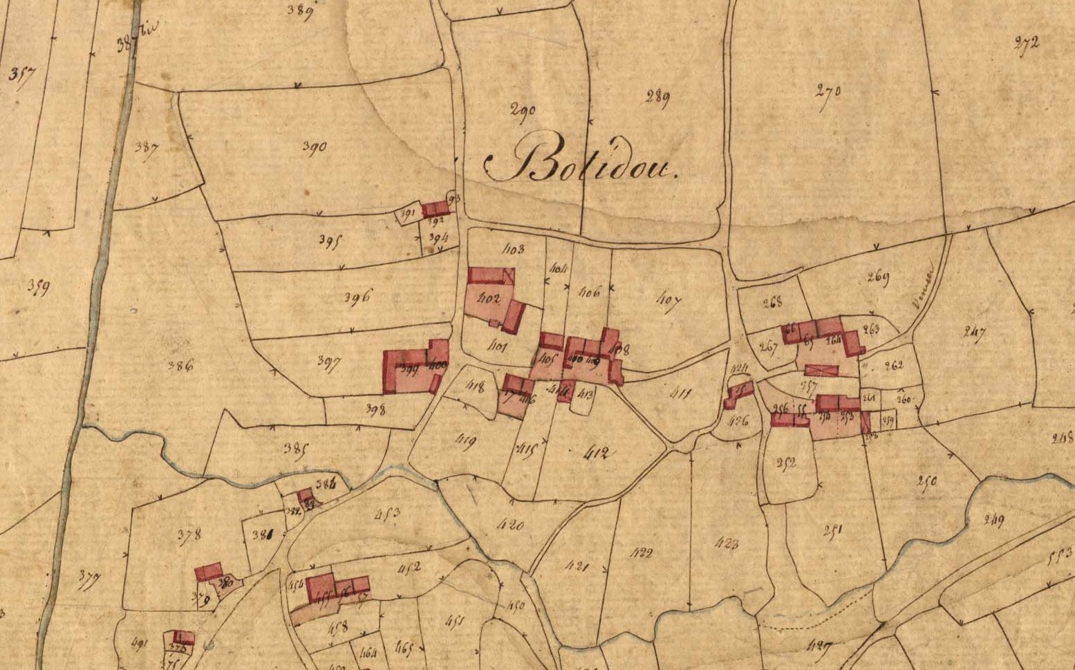 Botidou en 1828. Extrait du cadastre ancien, section D1 (série 3 P 335, Archives départementales des Côtes-d'Armor)Immatriculation