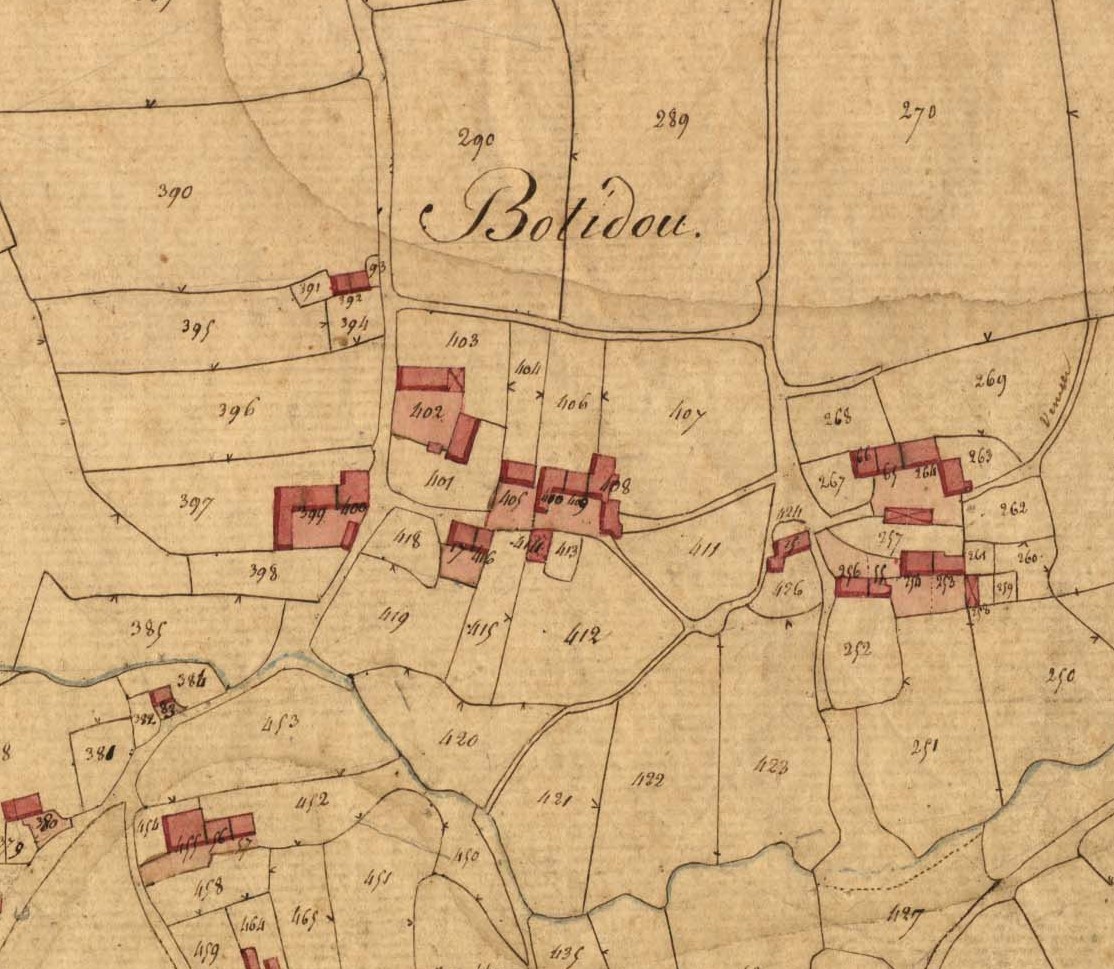 Botidou en 1828. Extrait du cadastre ancien, section D1 (série 3 P 335, Archives départementales des Côtes d'Armor)Immatriculation