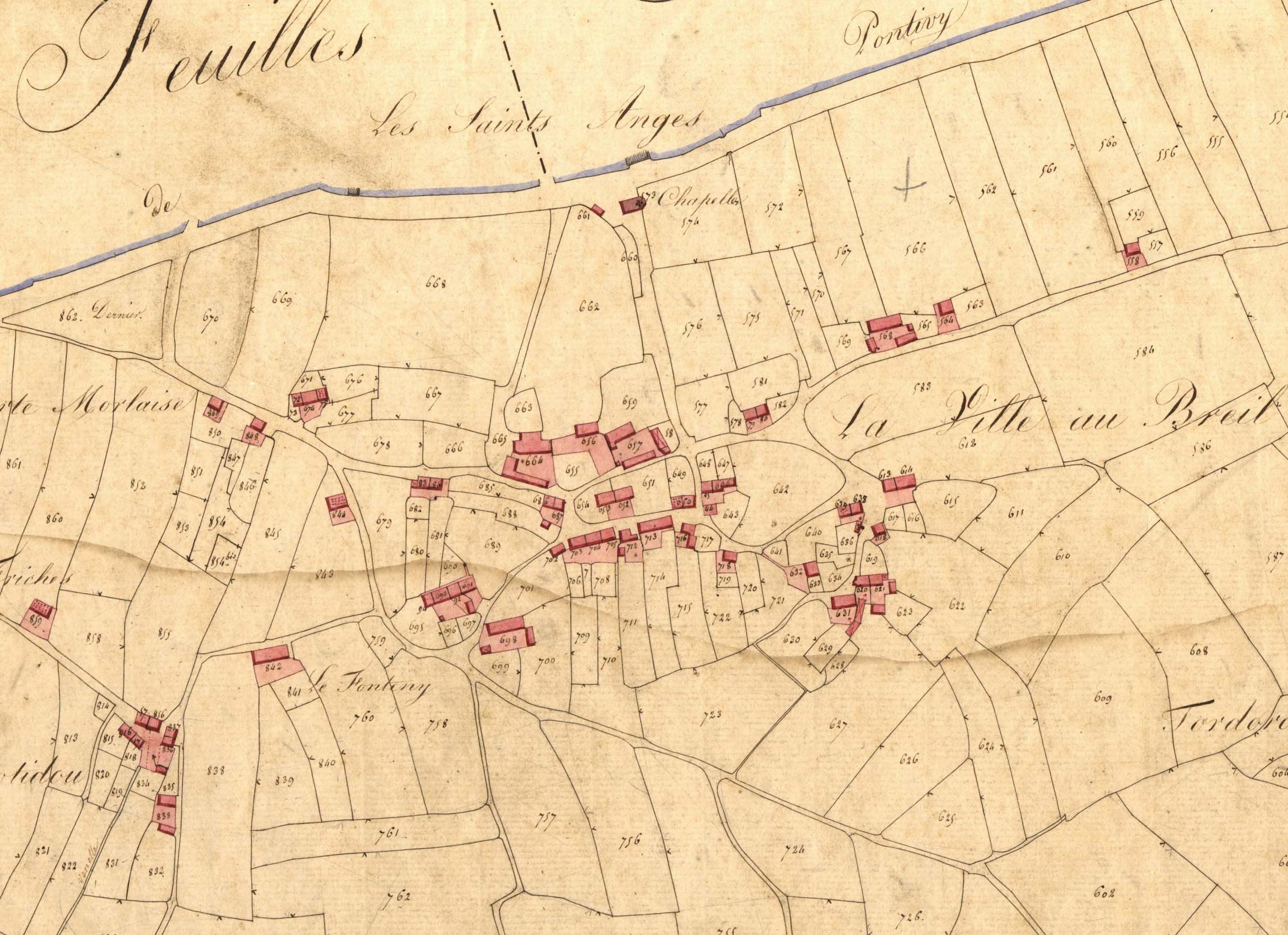 La Ville au Breil en 1828. Extrait du cadastre ancien, section C2 (série 3 P 335, Archives départemantales des Côtes d'Armor)Immatriculation