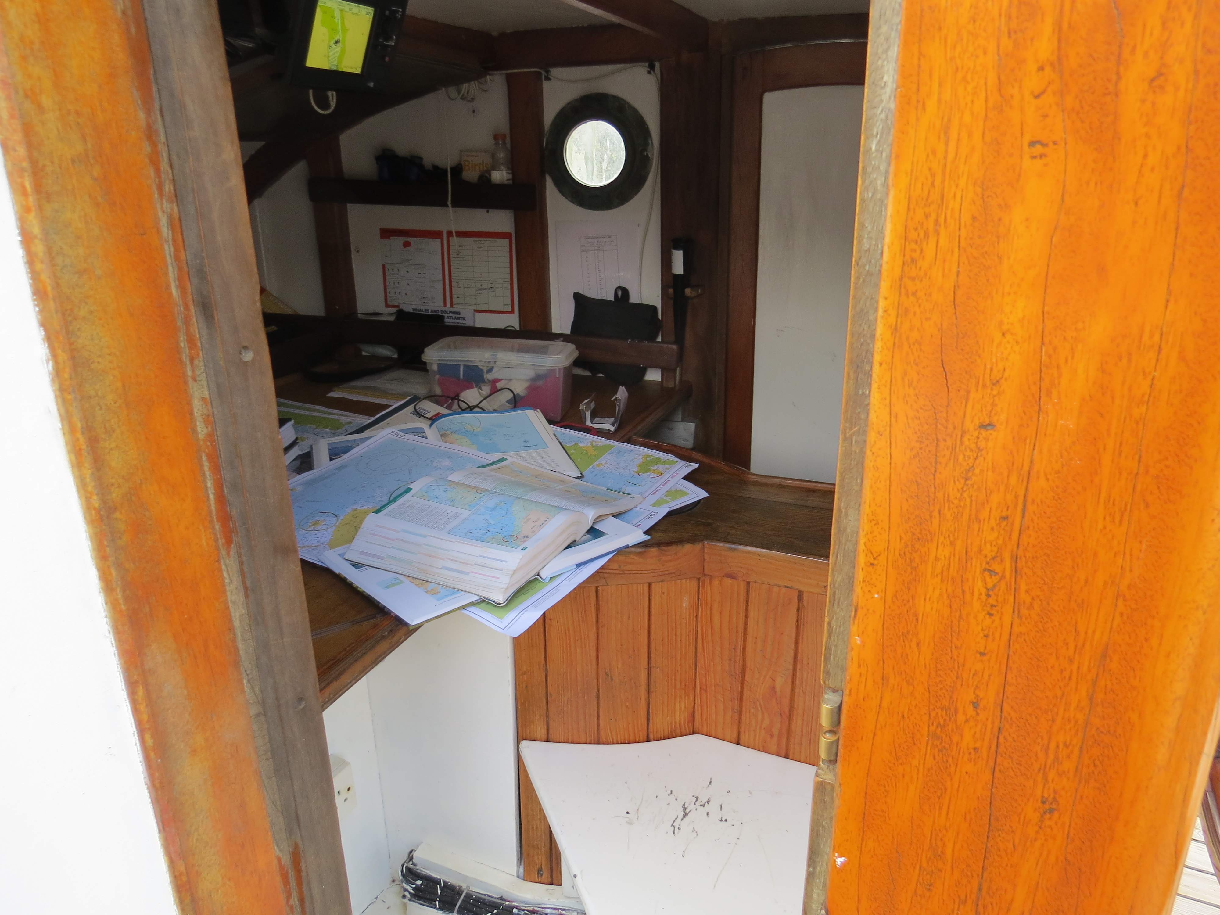 L'Irene au port de Tréguier en 2019 : salle des cartesImmatriculation