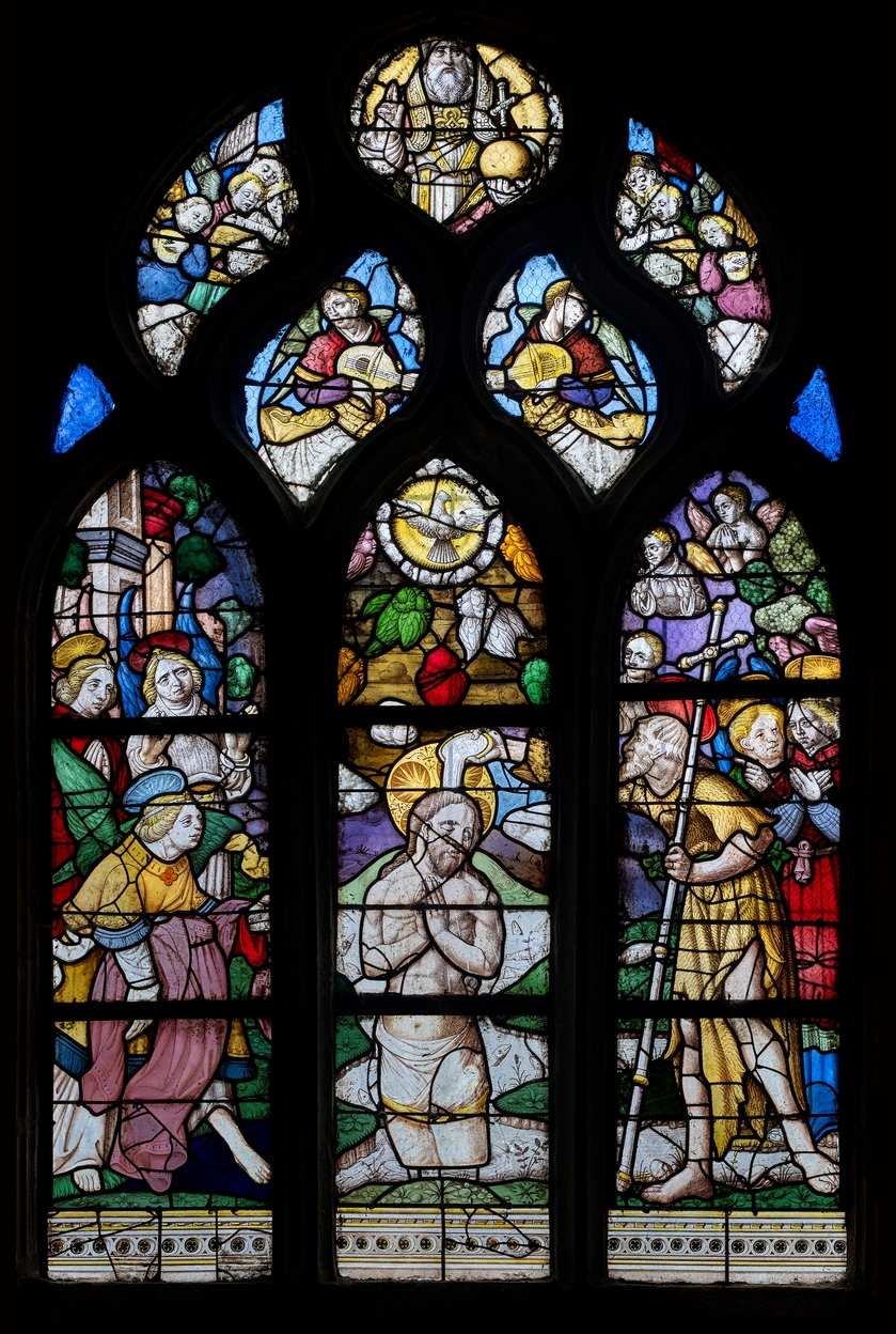 Verrière : Le baptême du Christ, chapelle du Notre-Dame-du-Crann (Spézet),