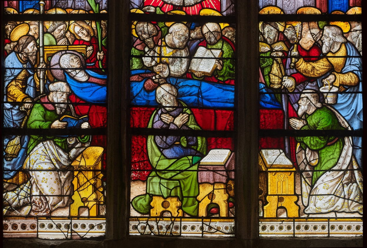 Verrière : Dormition et couronnement de la Vierge, chapelle du Notre-Dame-du-Crann (Spézet),