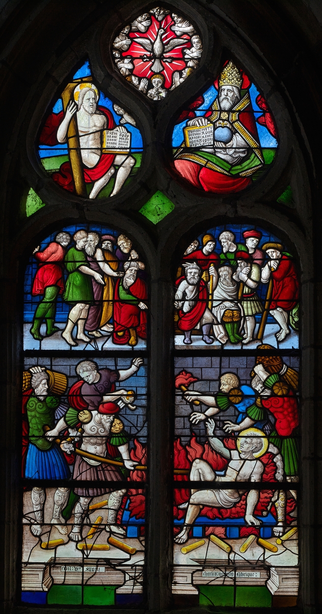 Verrière : Le martyre de saint Laurent, chapelle du Notre-Dame-du-Crann (Spézet),