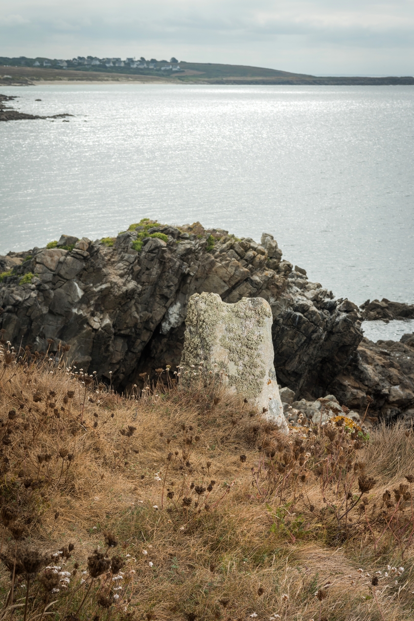 Pointe de Lijink, pierre dressée pour fixation d'un mât de levage (encoche visible sur le sommet). (2022)Immatriculation