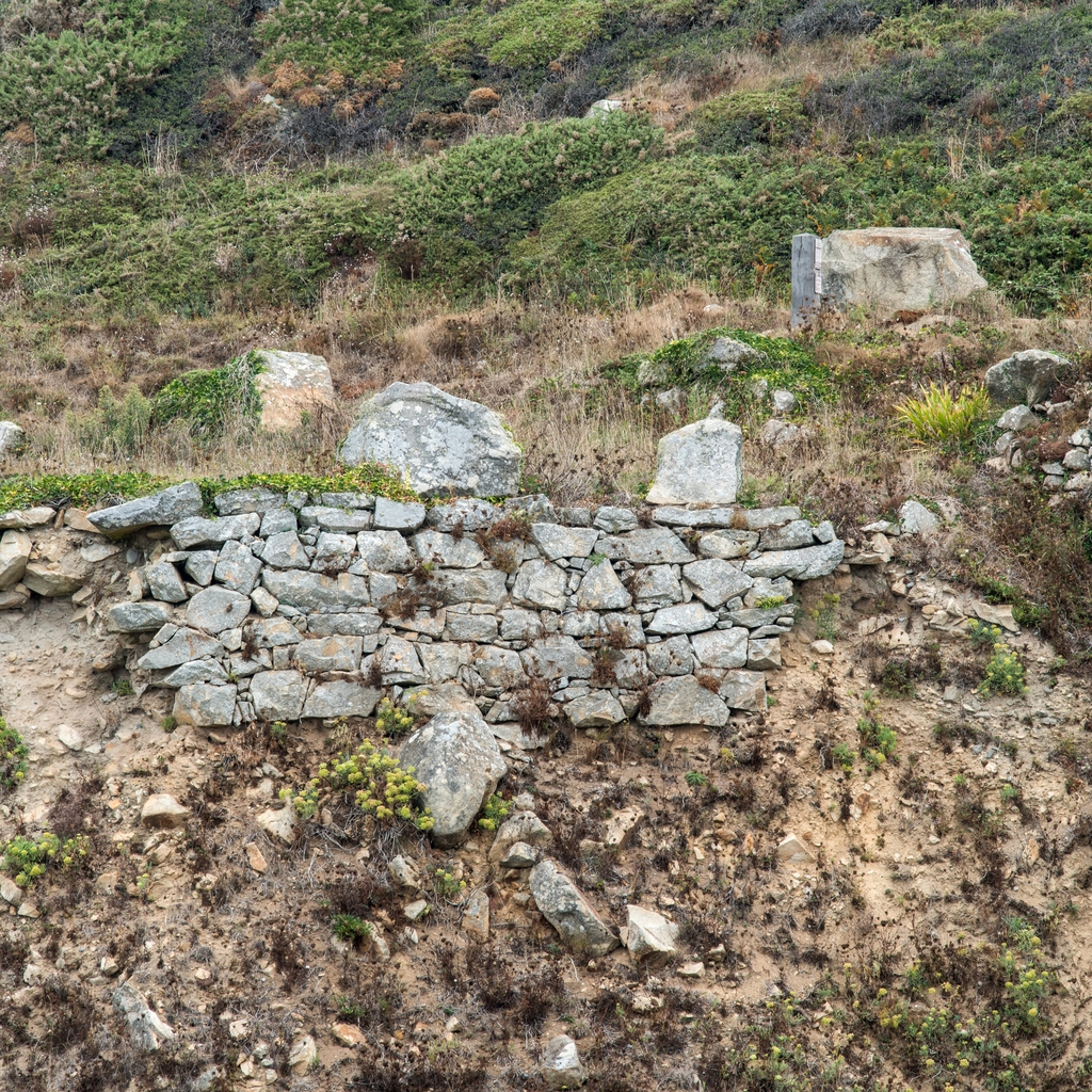 Pors Loubous, muret de soutenement, détail de la maçonnerie.Immatriculation