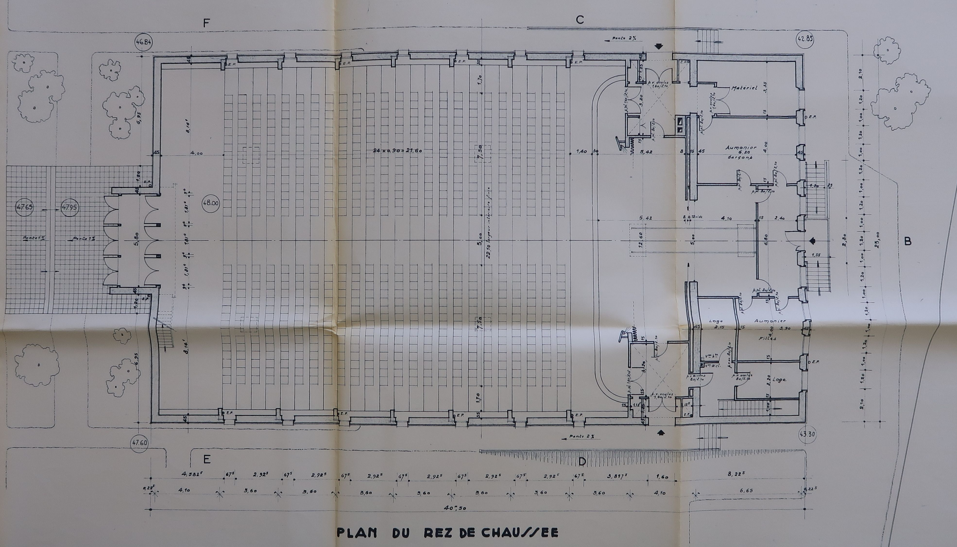 Salle audiovisuelle. Plan du rez-de-chaussée. Jean-Baptiste Mathon, architecte, 5 février 1963.Immatriculation