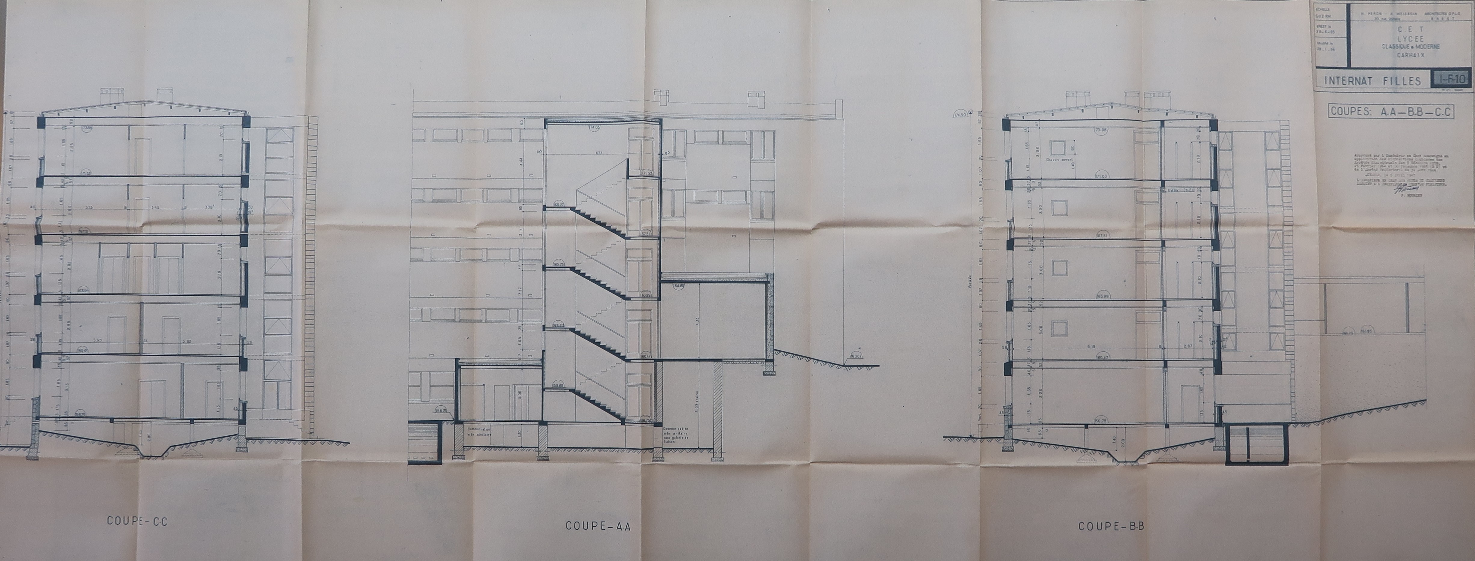 Coupes de l'internat de filles. Hervé Péron et Alexandre Weisbein, architectes, 1965.Immatriculation