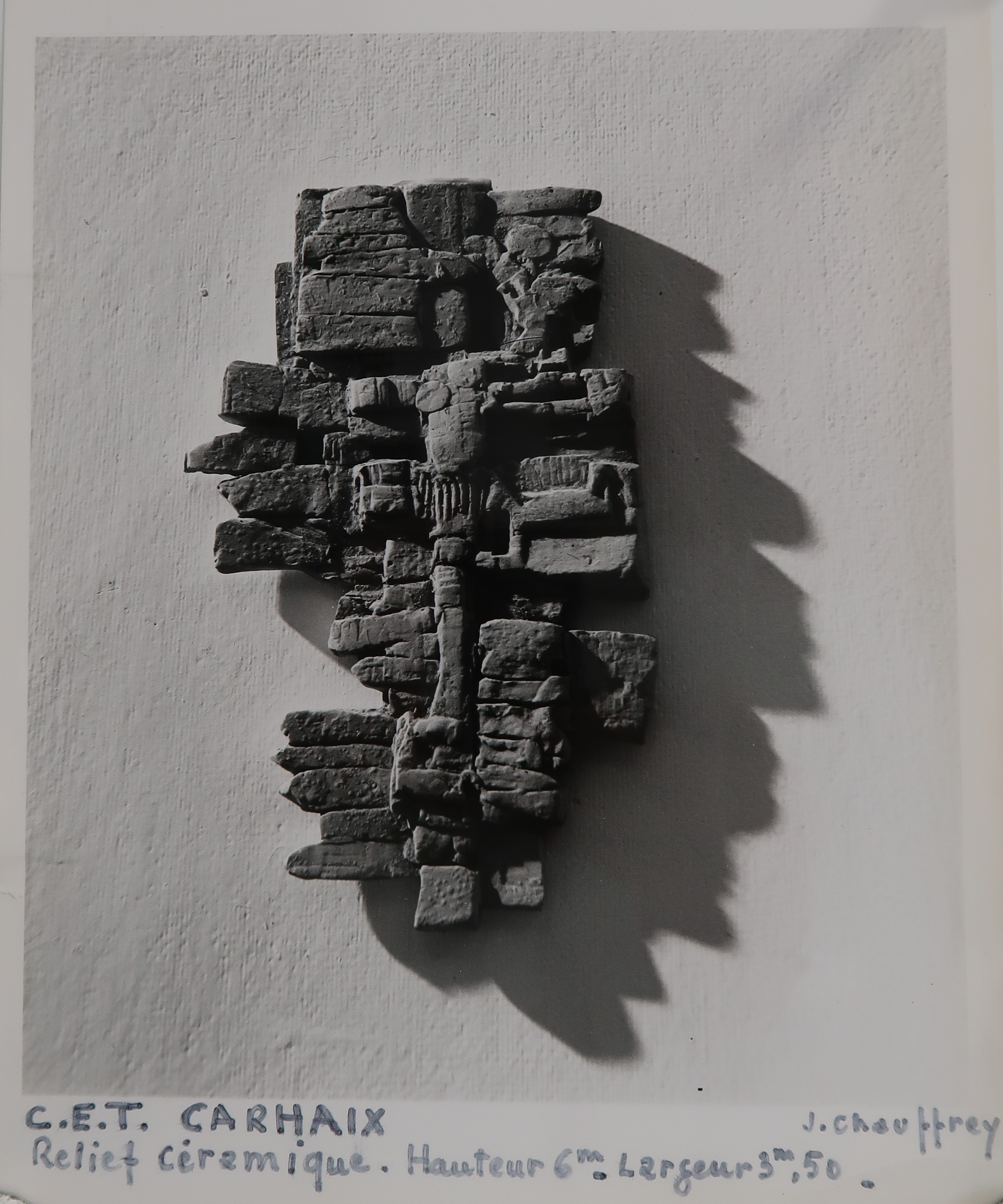 Photographie de la maquette d'un relief décoratif en céramique (6 X 3 m), artiste refusé par la Commission nationale du 1%.Immatriculation