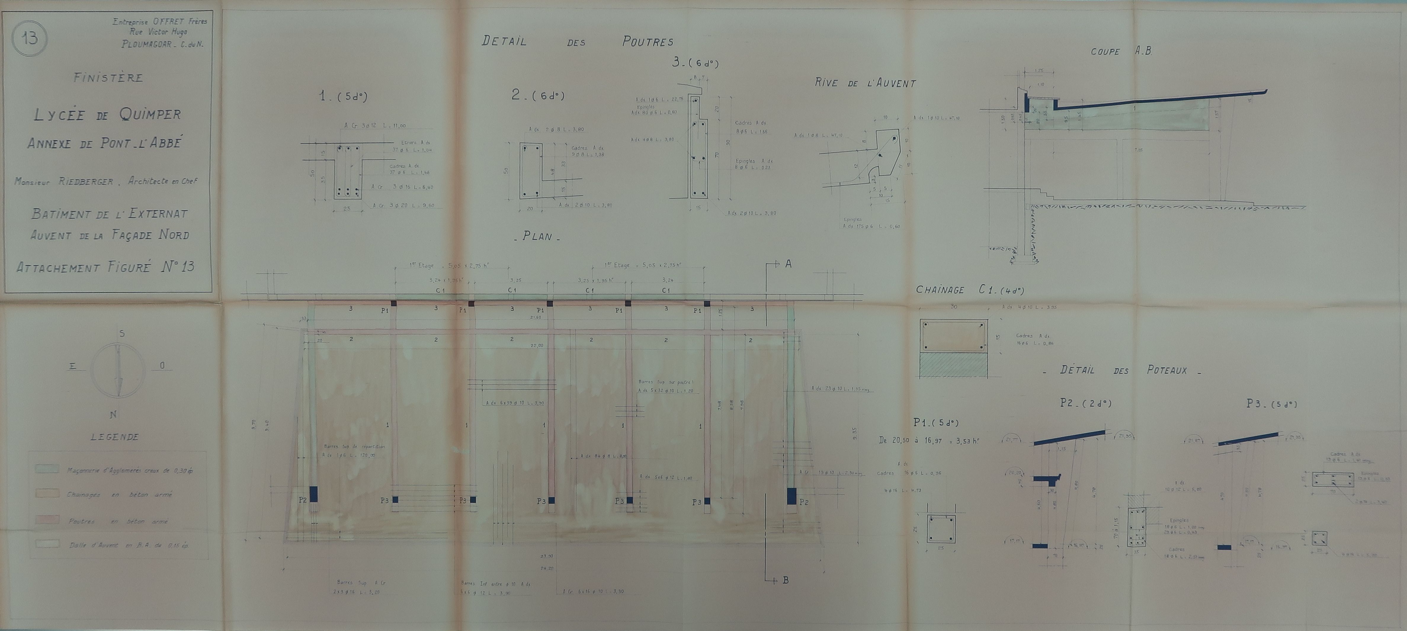 Archives départementales d'Ille-et-Vilaine : 1343W64. Riedberger [H.] et entreprise Offret, Lycée de Quimper, annexe de Pont-l'Abbé. Plans, sd. (vers 1960).