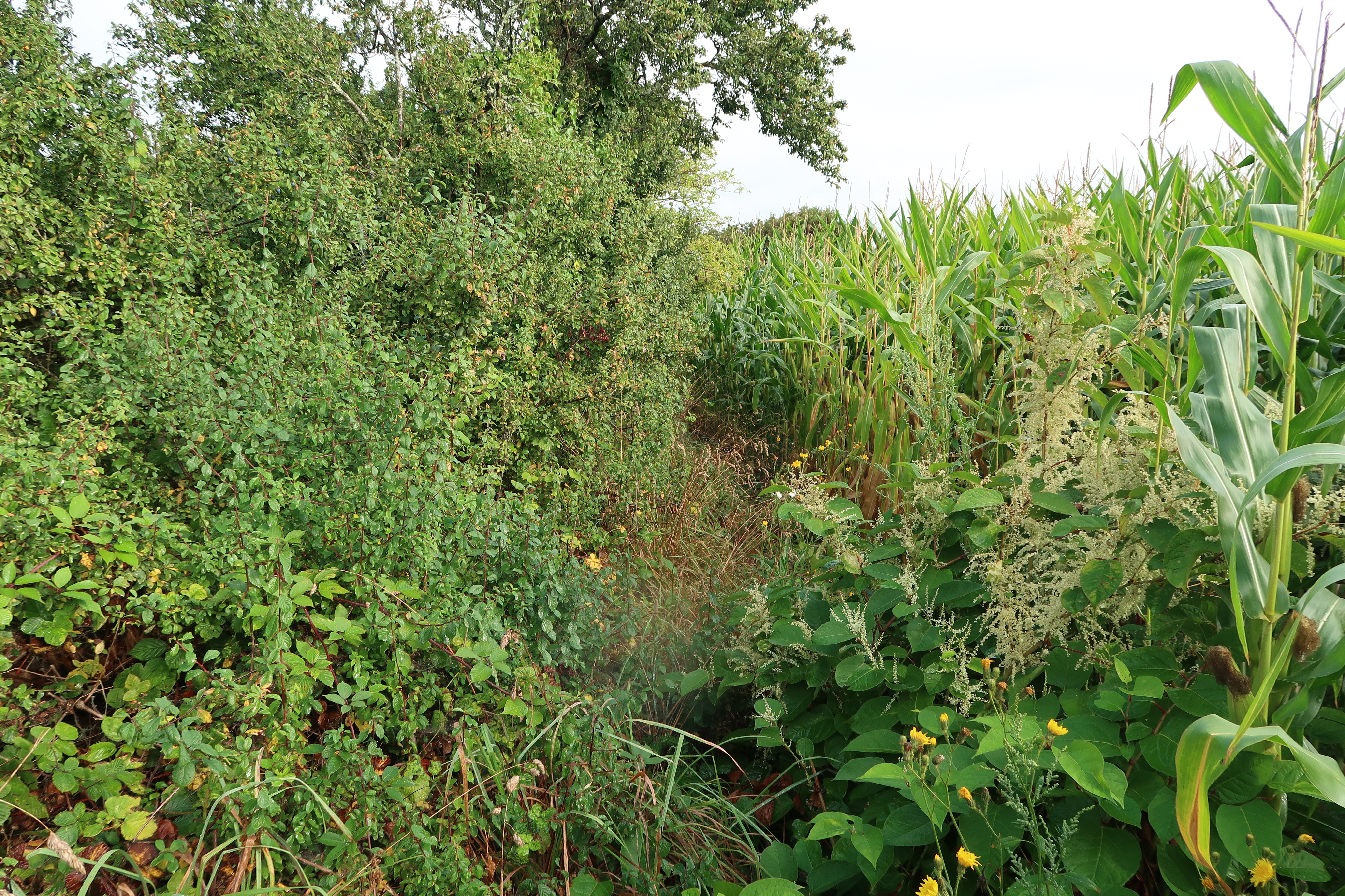 Vue de situation au milieu d'un champ de maïs (état en 2021)Immatriculation
