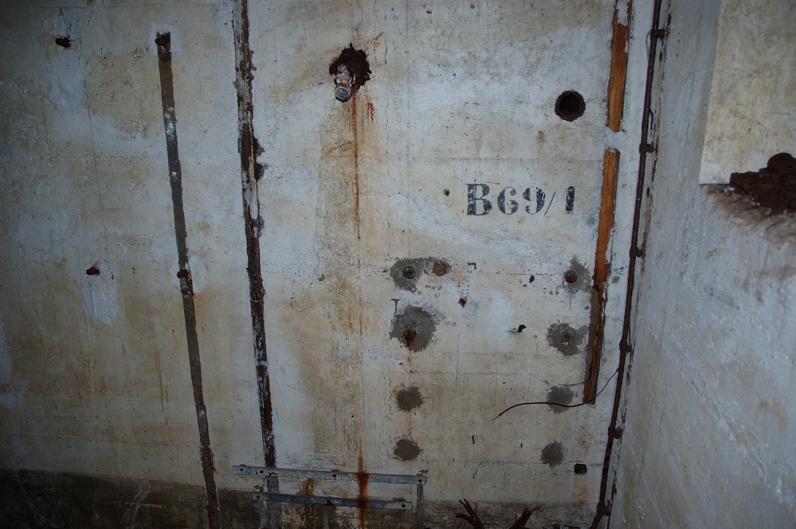 Vue de la chambre de troupe de droite : numéro "B 69/1" (état en 2005). Le boîtier de connexion téléphonique a disparu entre 2003 et 2005Immatriculation