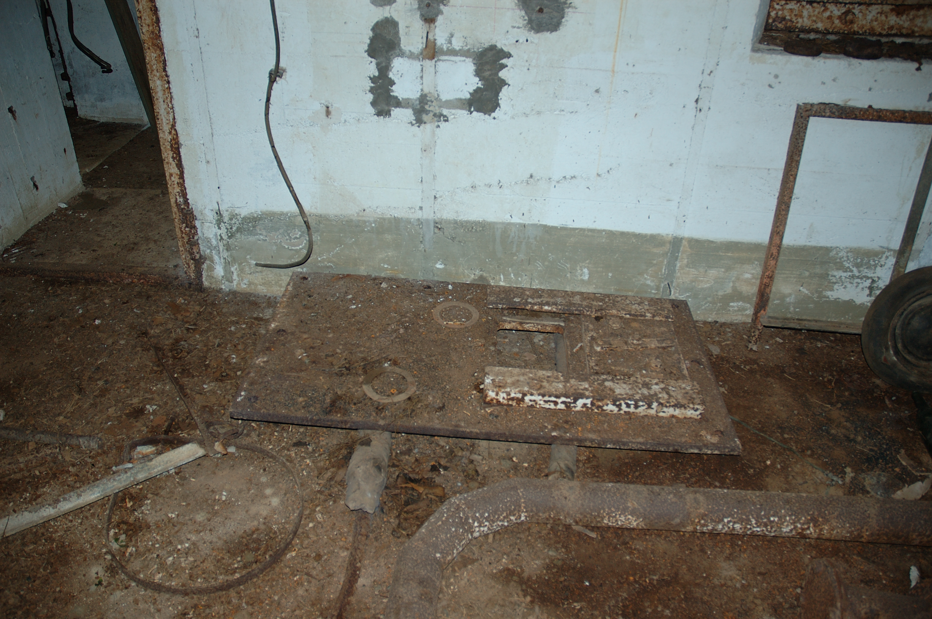 Vue de la chambre de troupe de gauche : créneau blindé gisant au sol (état en 2005)Immatriculation