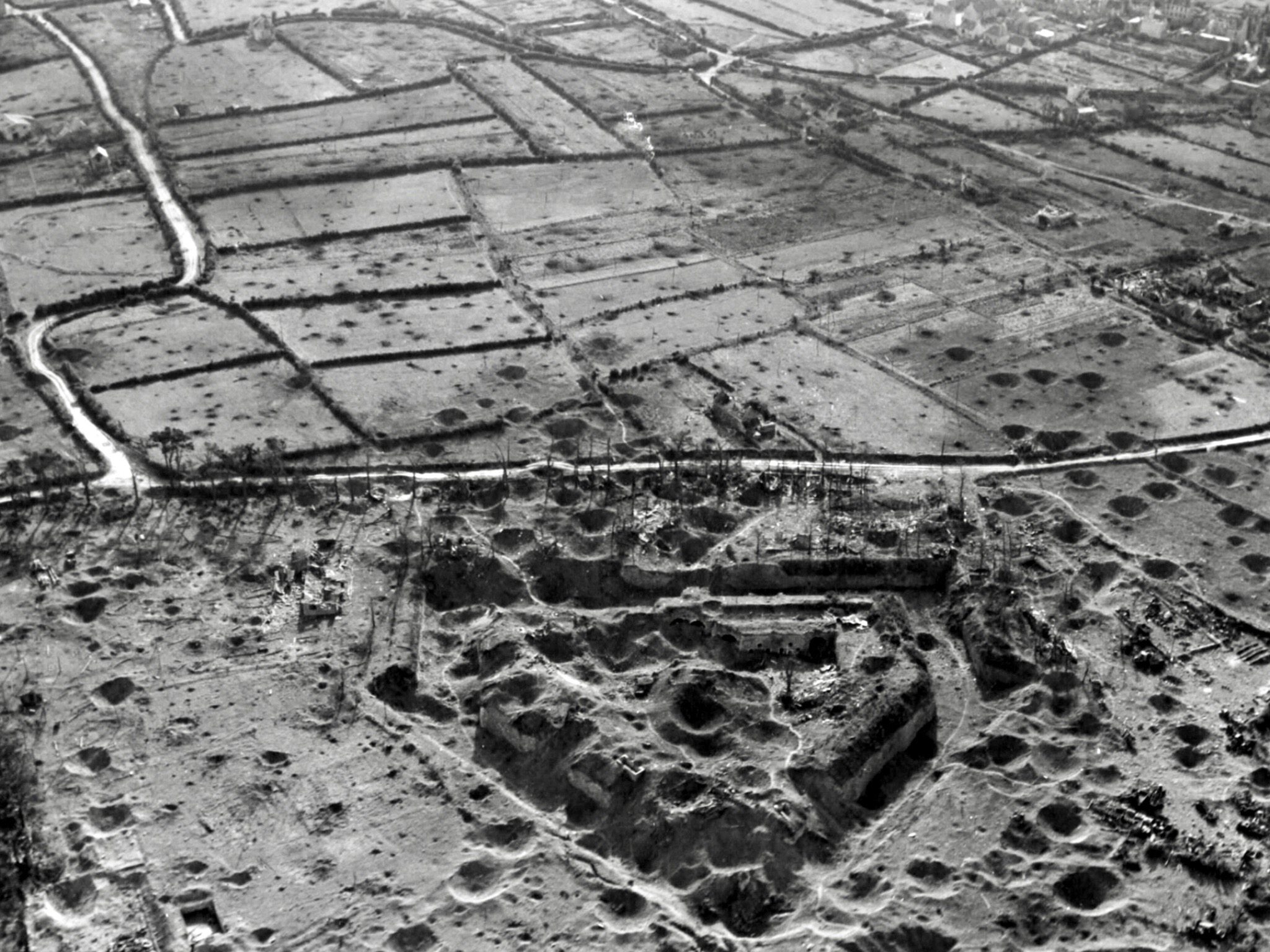 Vue aérienne oblique du Fort de Keranroux, septembre 1944 (United States Army)Immatriculation
